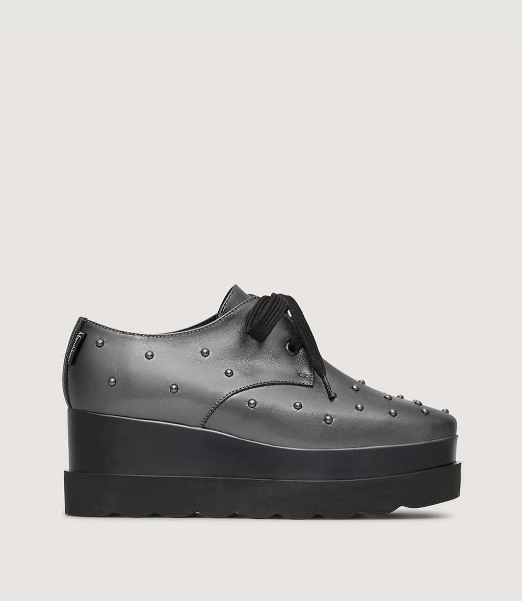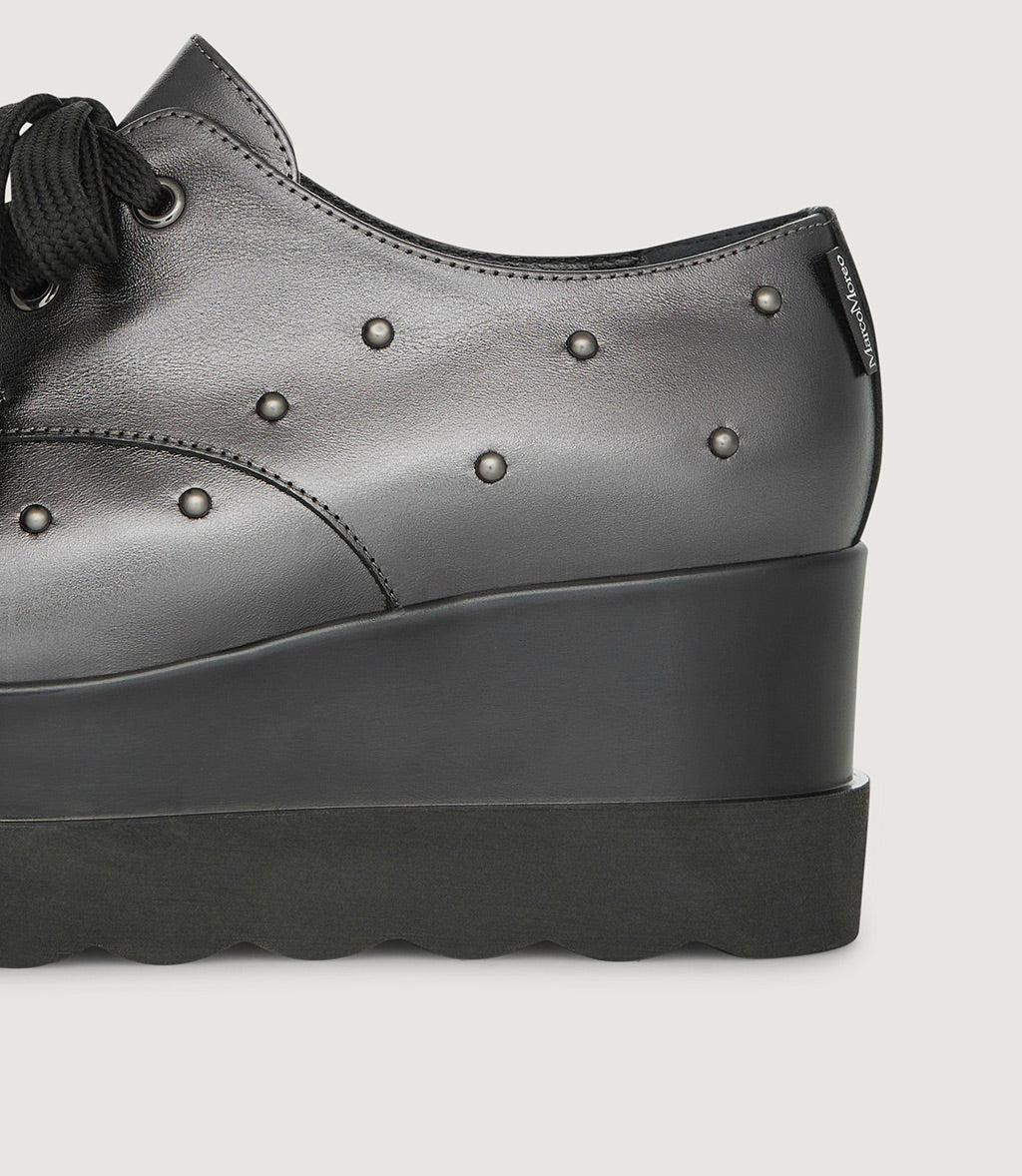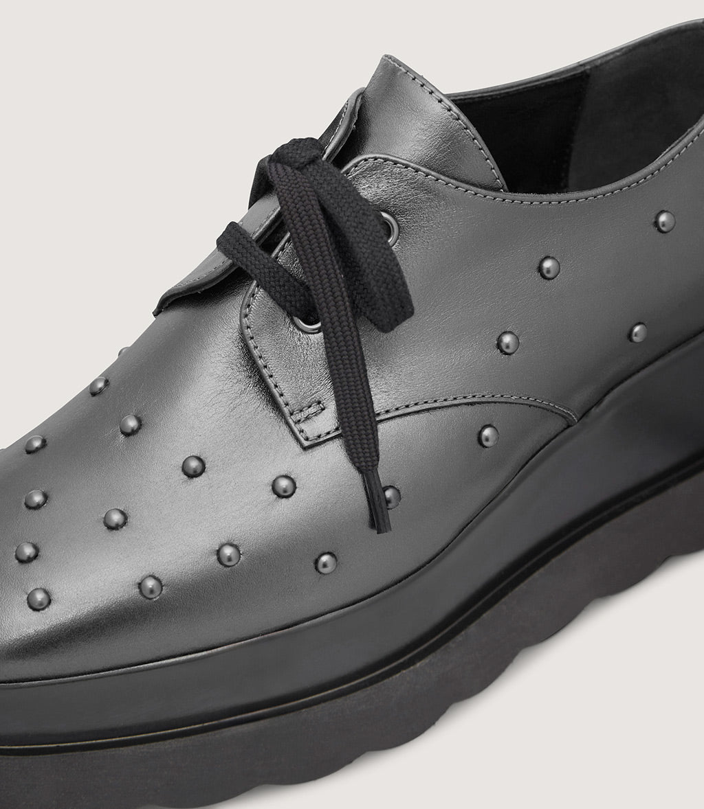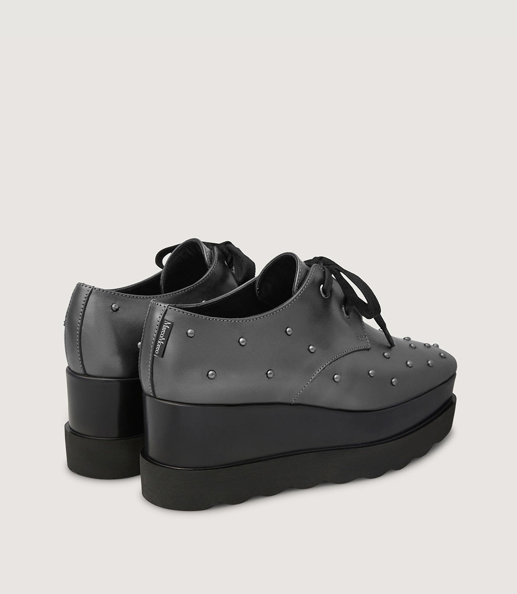 Berenice is not new at Marco Moreo. Already present in past collections, this bestselling lace-up has shown how to innovate while remaining true to itself. In the new AW 25/26 Collection, it’s  in a new version with small sgun metal  flat studs along with the iconic bicolor platform