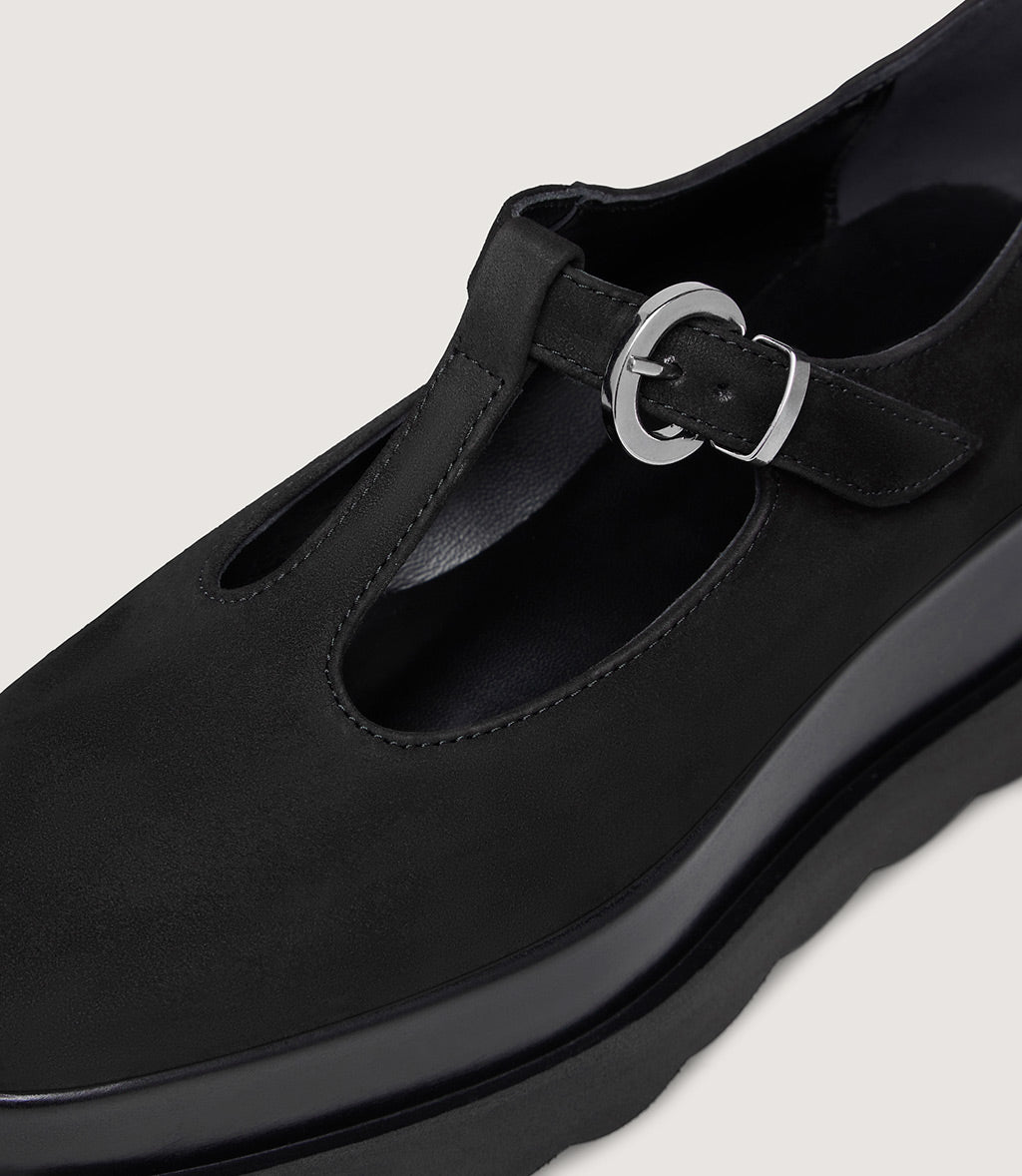 Dara is a feminine T-Bar shoe that combines the comfort of fastening with a small external buckle and the timeless elegance inherited from the Charleston model, with its decorative strap perpendicular to the ankle strap that accentuates the instep.