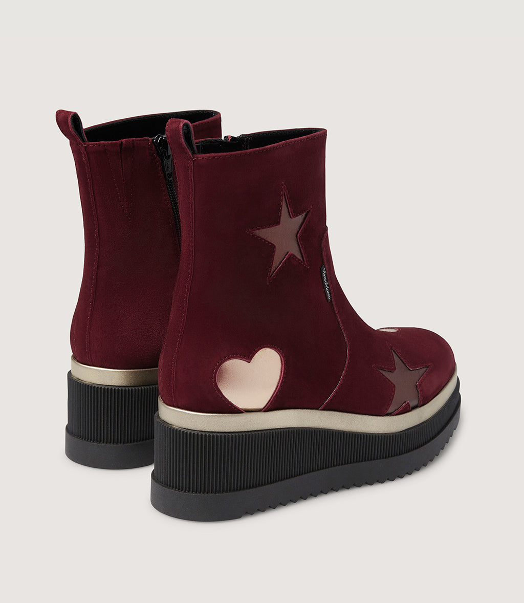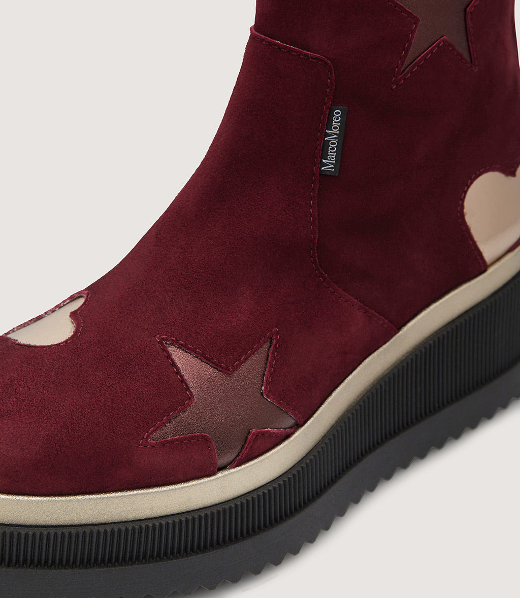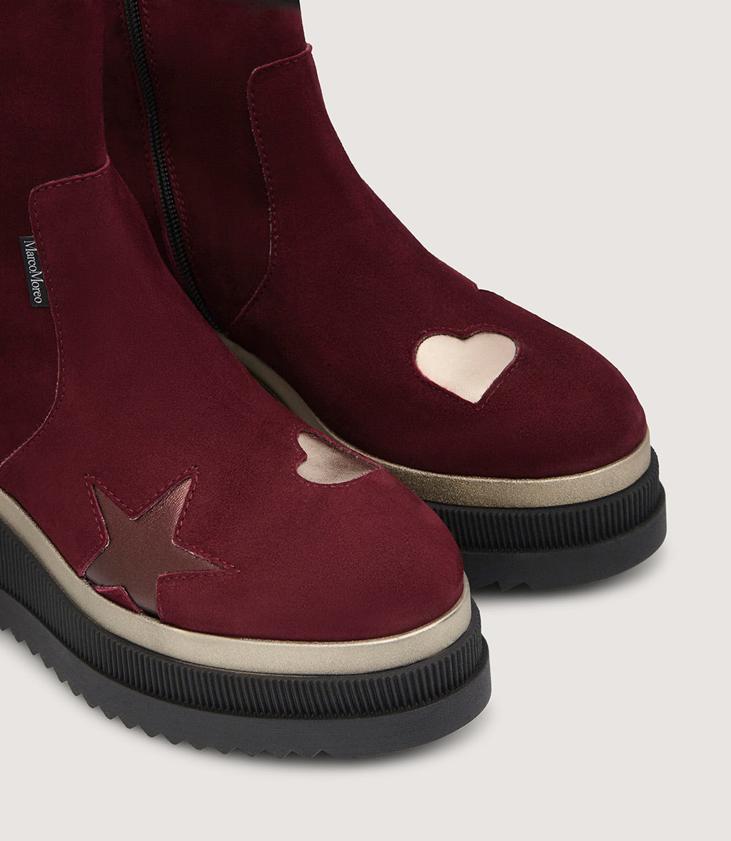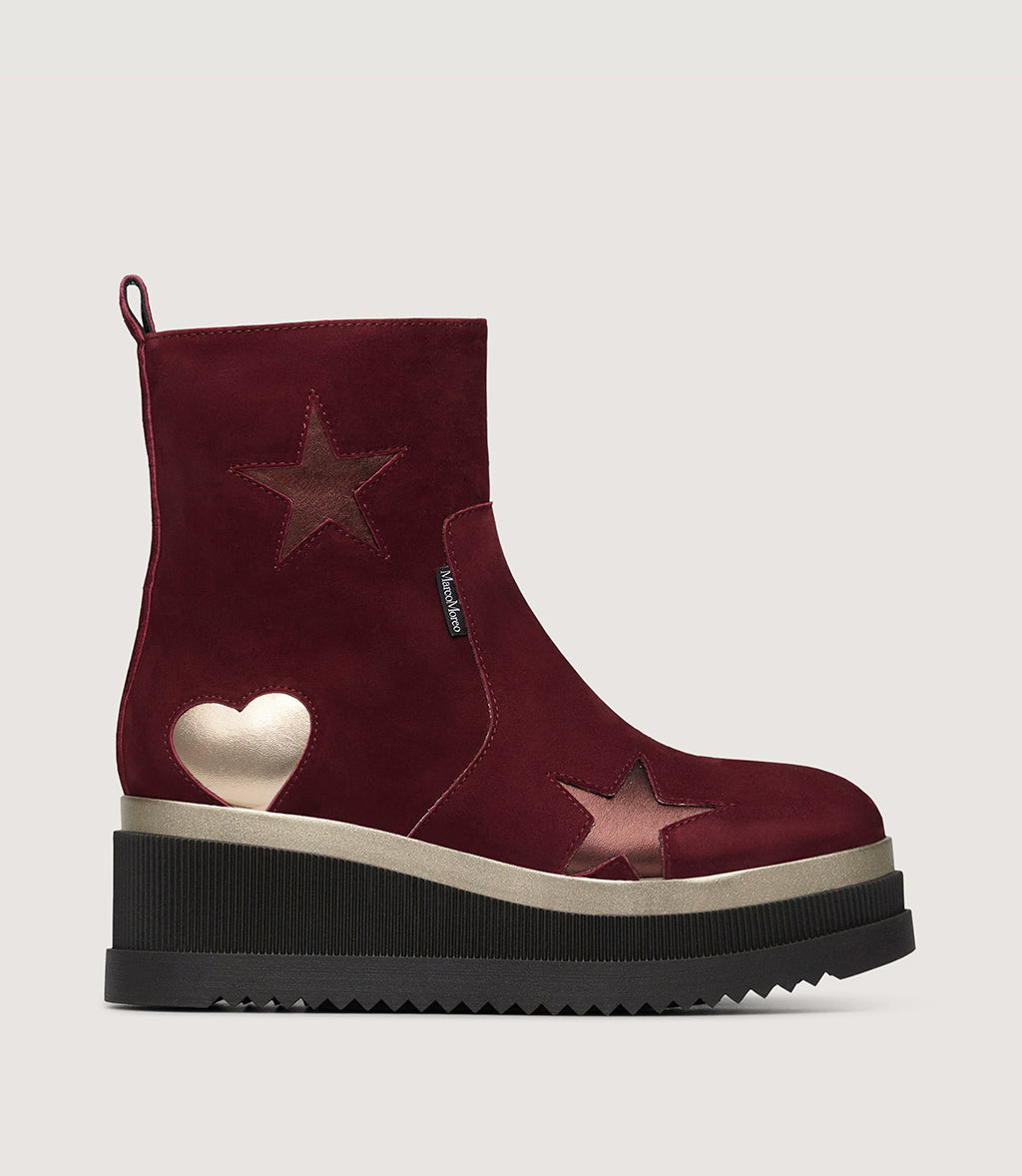 Corinne is the most classic of ankle-boots, with clean and elegant lines that ooze a romantic style. Marco Moreo’s iconic star and heart decoration from previous models and collections returns, and this time the tones are gold and bronze, for a play of light and reflections that warms every step!