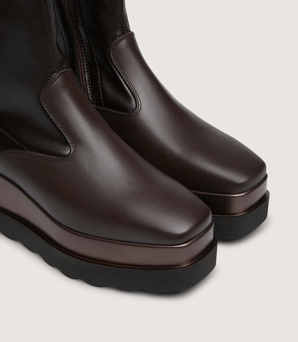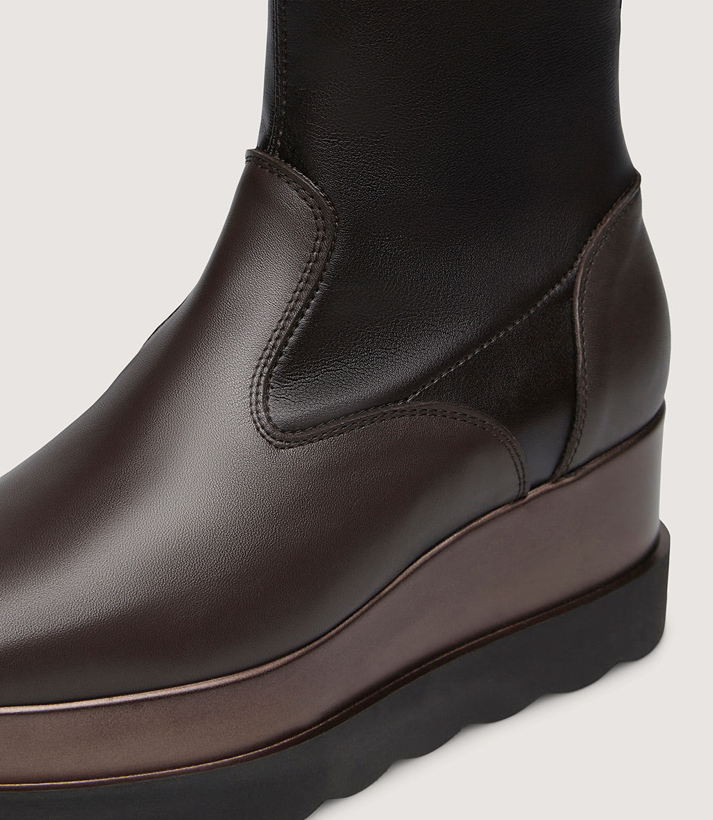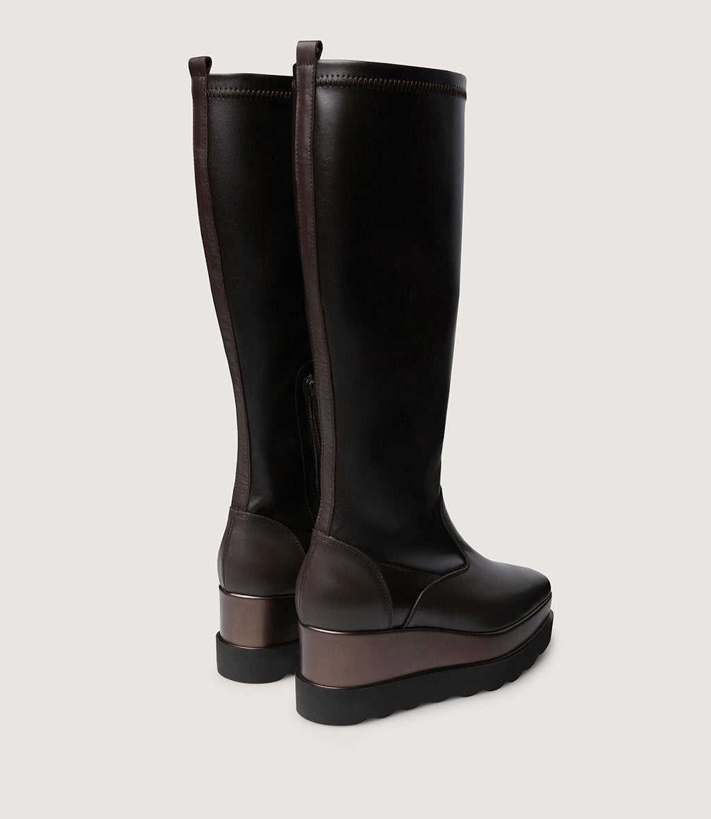 Crafted in smooth black and brown  leather, it features a clean, glove-like shaft that fits close to the leg, enhanced by subtle topstitching and a discreet inner zip.