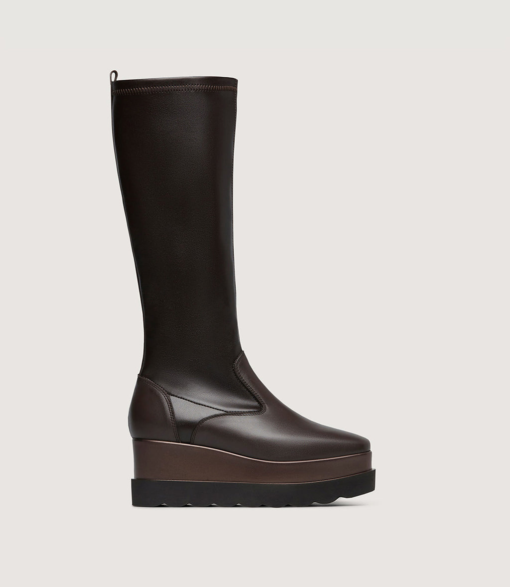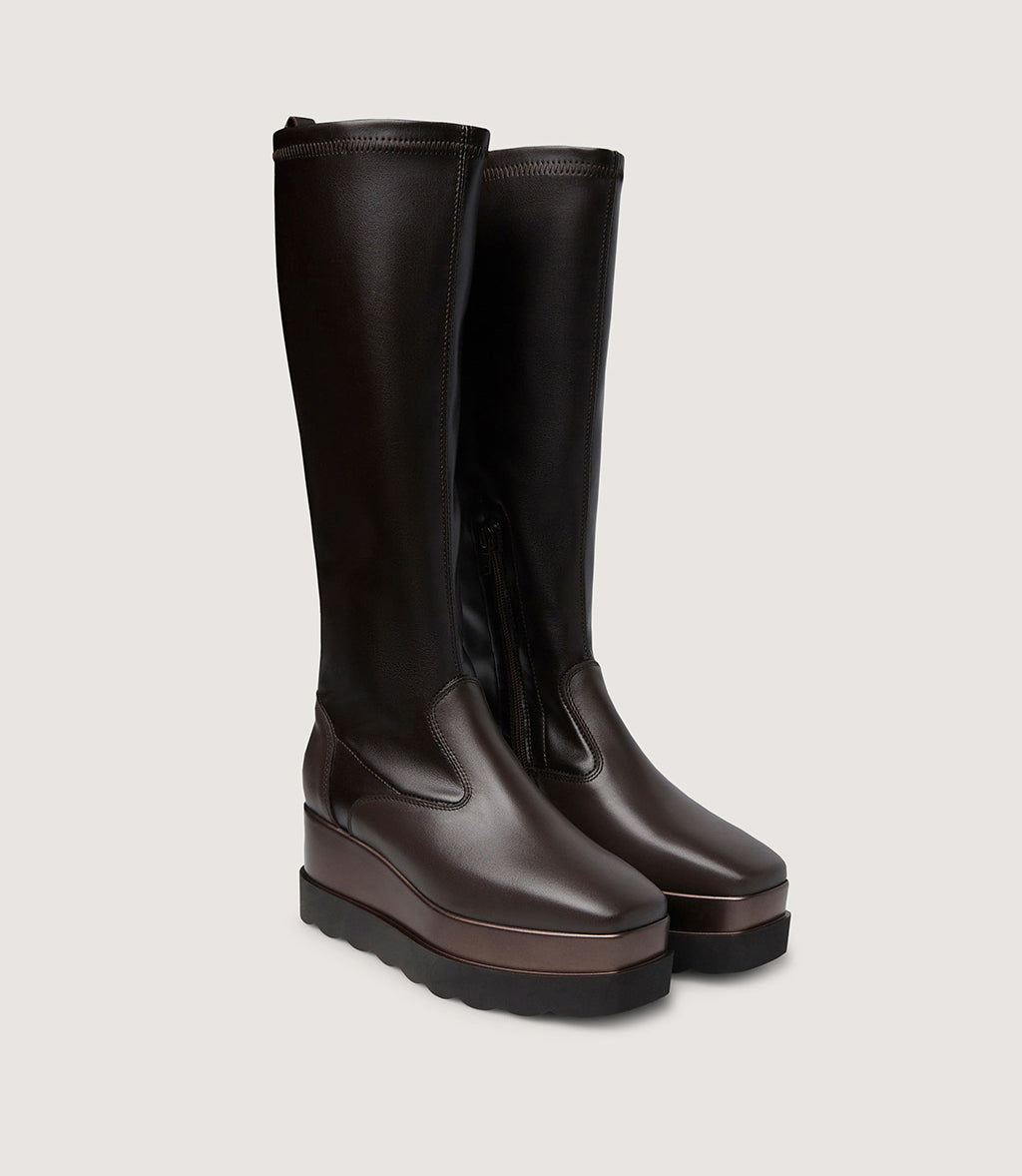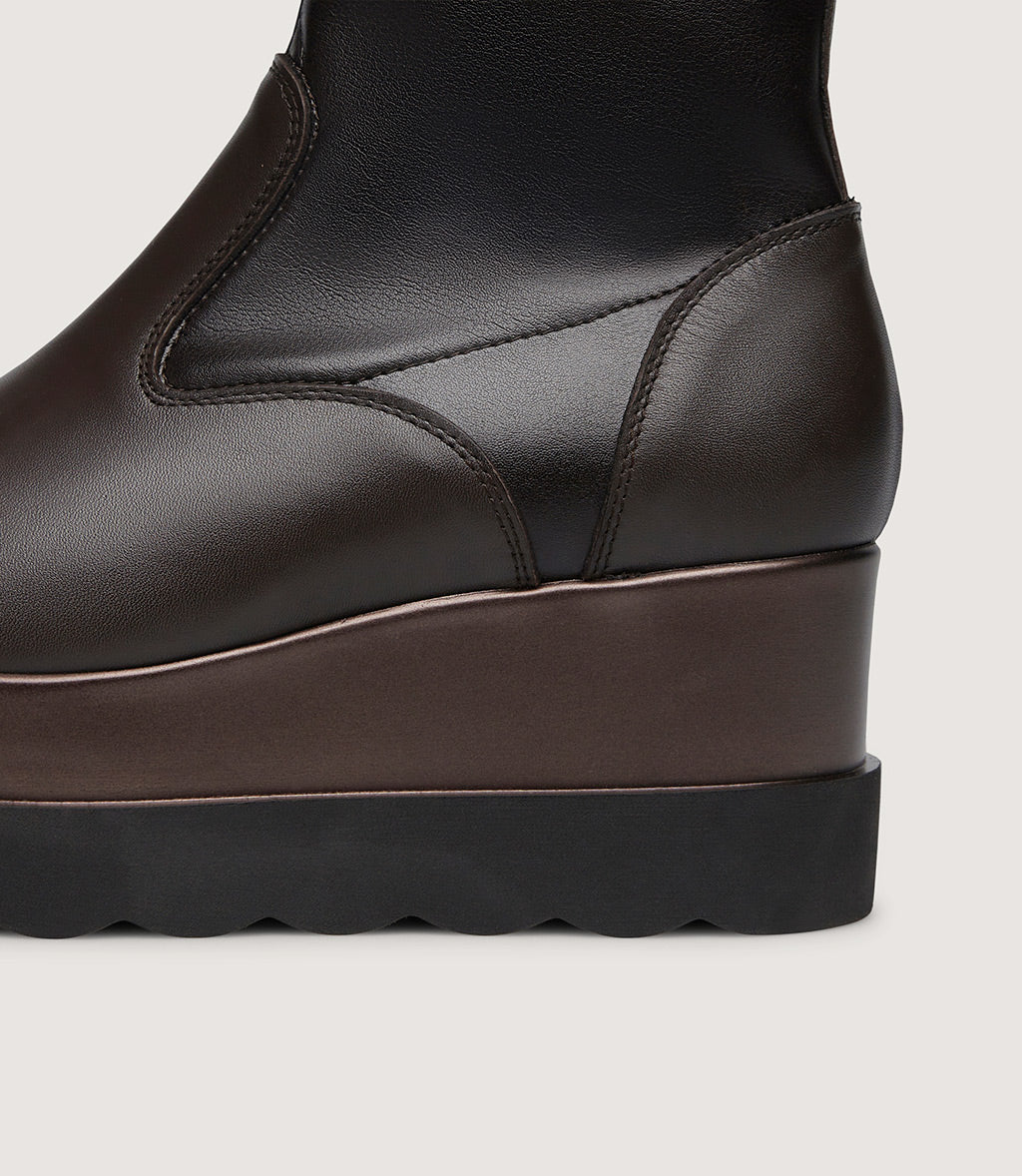 Crafted in smooth black and brown  leather, it features a clean, glove-like shaft that fits close to the leg, enhanced by subtle topstitching and a discreet inner zip.