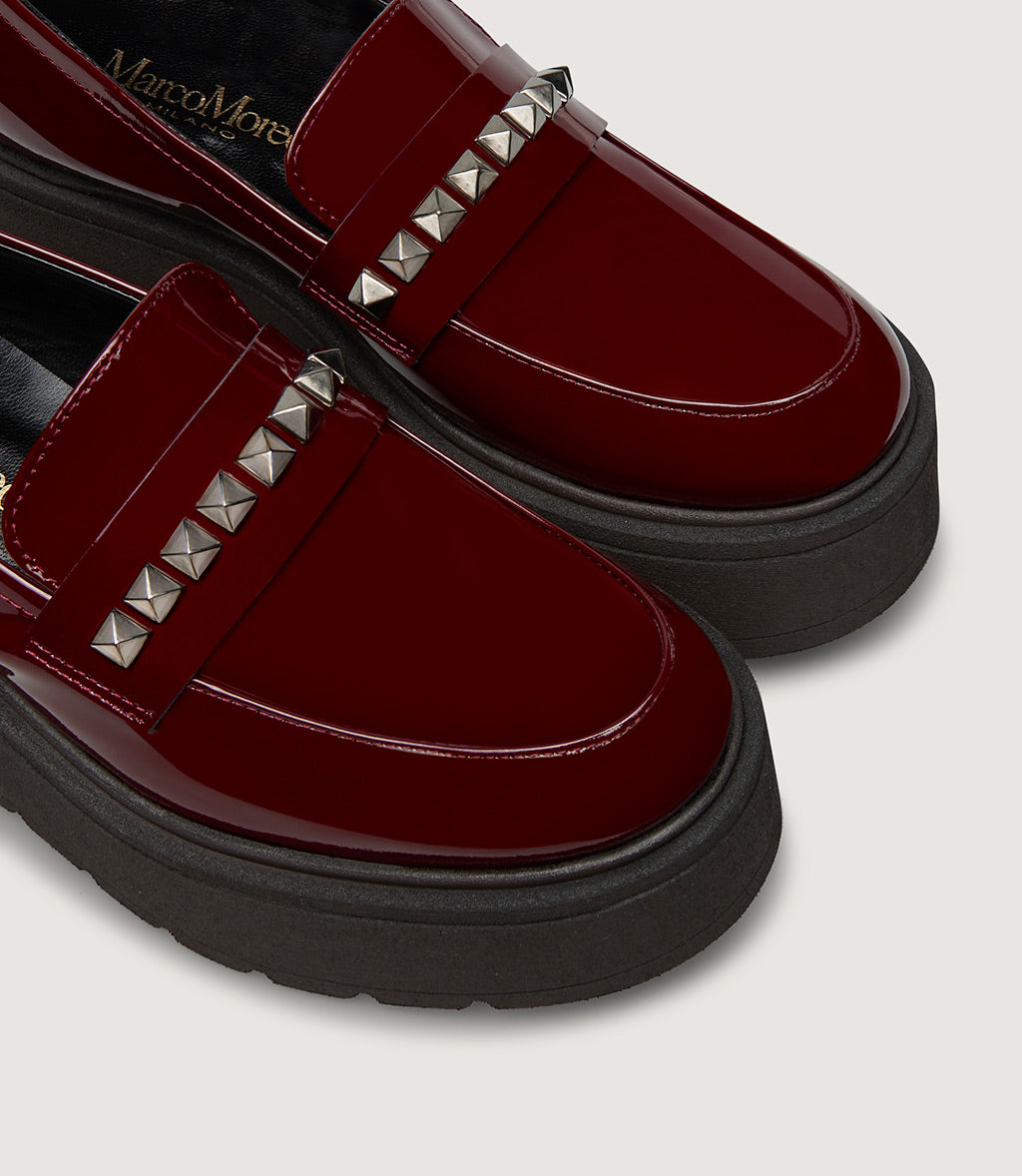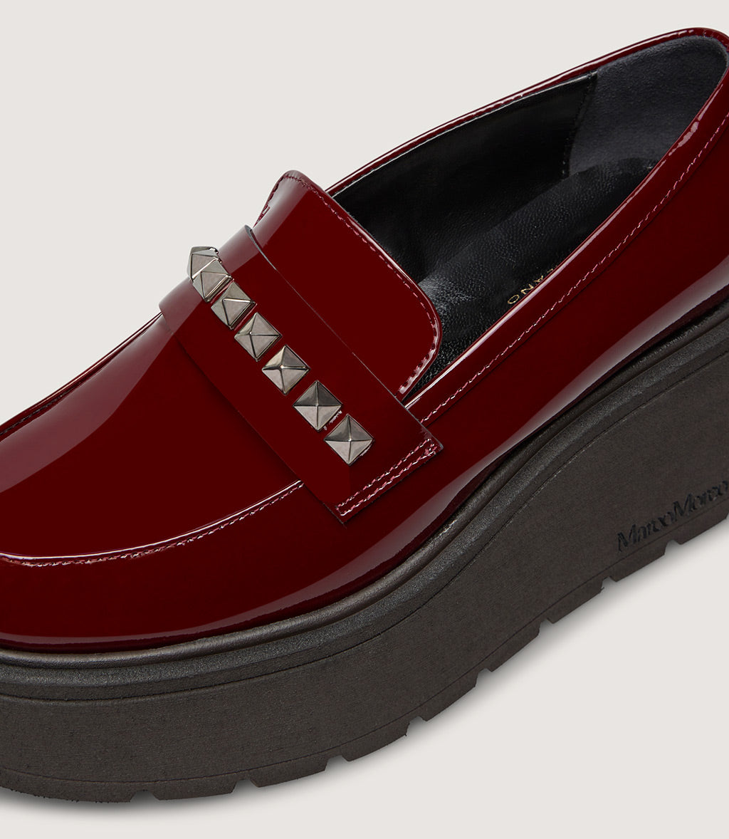 Women’s Patent Leather Platform Loafers – Studded Luxury Design