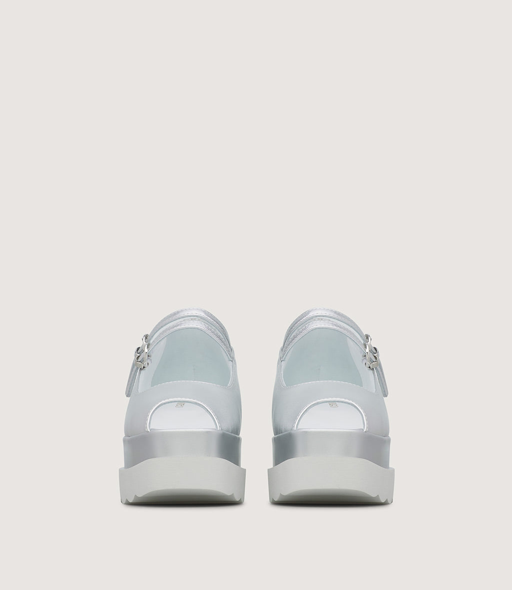 The standout feature is the elevated platform sole, finished with a subtle laminated metallic band that adds a touch of light and contrast. The sculpted white outsole ensures comfort and stability, making this style perfect for all-day wear while elevating everyday looks.