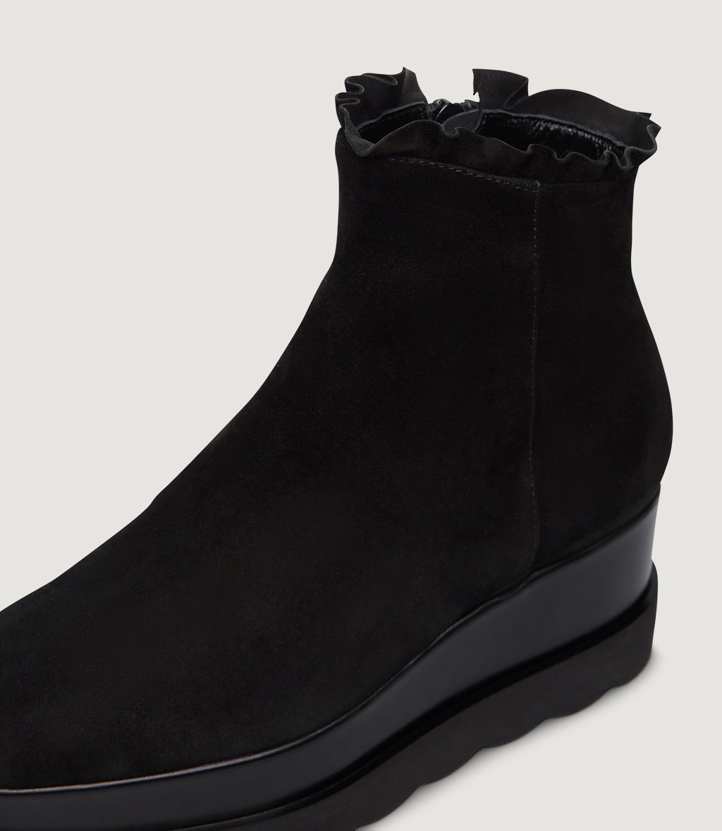 Blanca isn’t your usual ankle boot! It’s lower than most, with a soft, touchable texture and a delicate ruffle that wraps around the ankle. A boot you’ll want to wear—and touch—again and again!