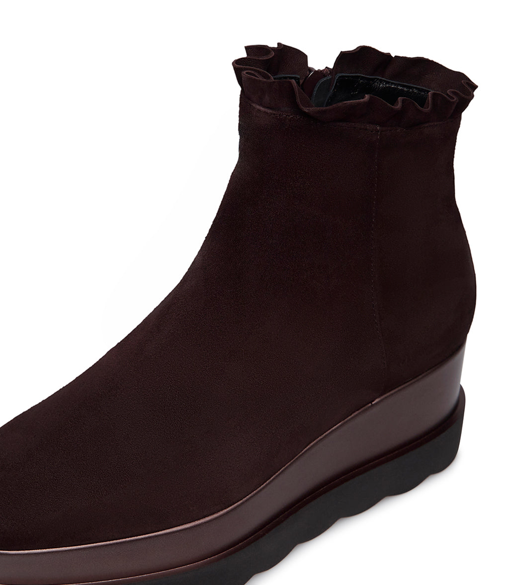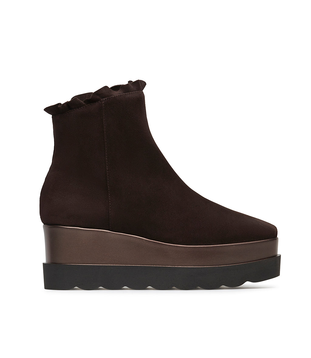 Blanca isn’t your usual ankle boot! It’s lower than most, with a soft, touchable texture and a delicate ruffle that wraps around the ankle. A boot you’ll want to wear—and touch—again and again!