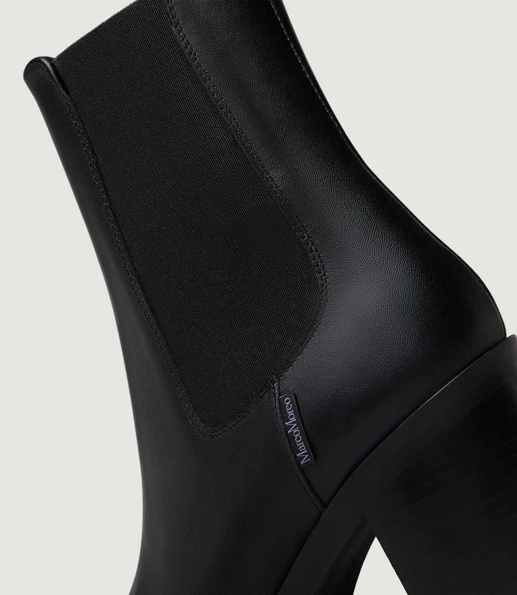 A modern take on the Chelsea, crafted in smooth black and brown  leather with sleek, uninterrupted lines.