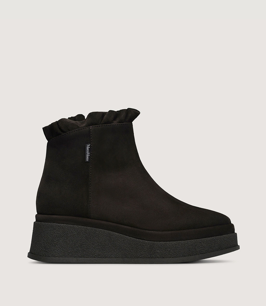Madison isn’t your usual ankle boot! It’s lower than most, with a soft, touchable texture and a delicate ruffle that wraps around the ankle. A boot you’ll want to wear—and touch—again and again!