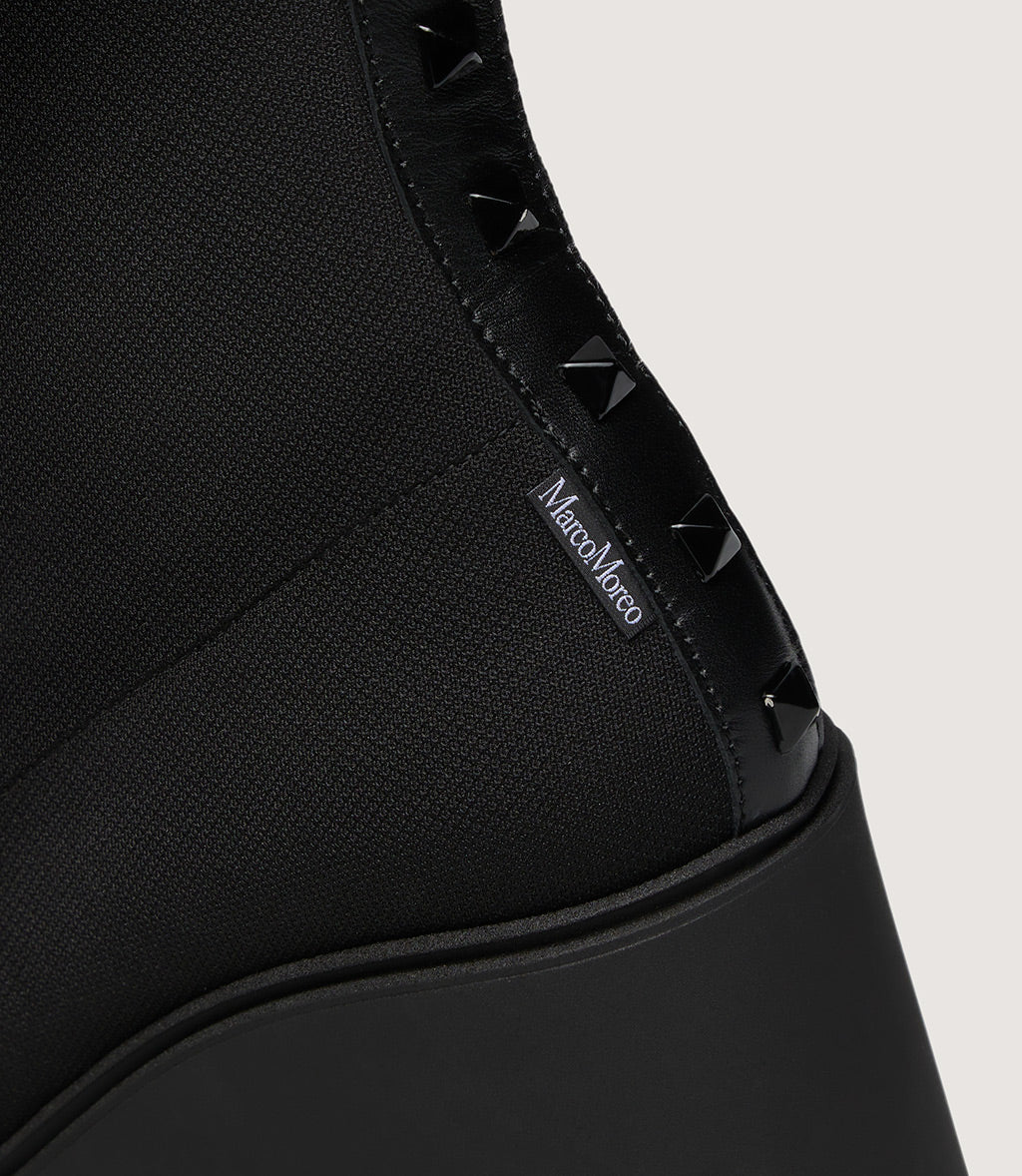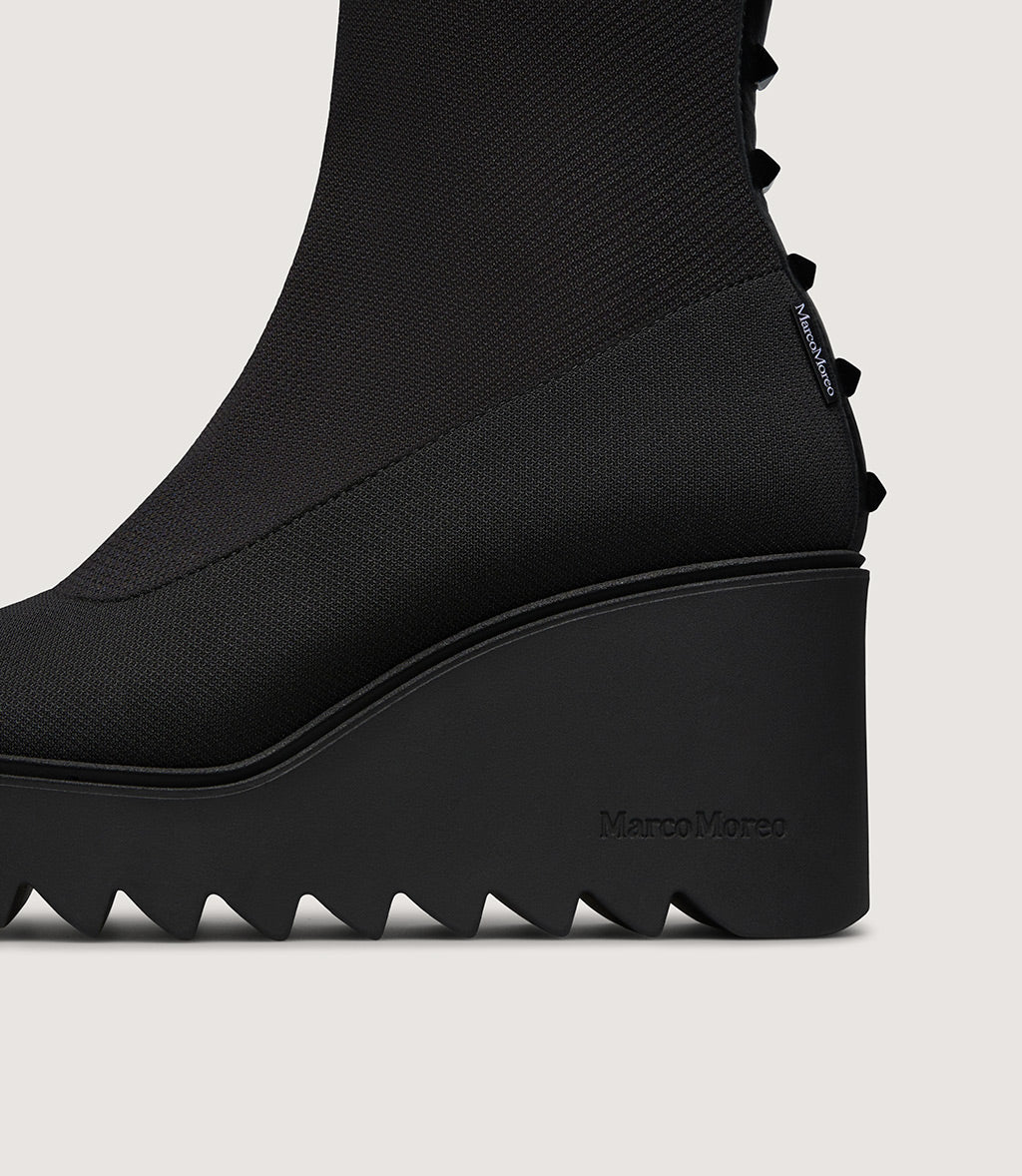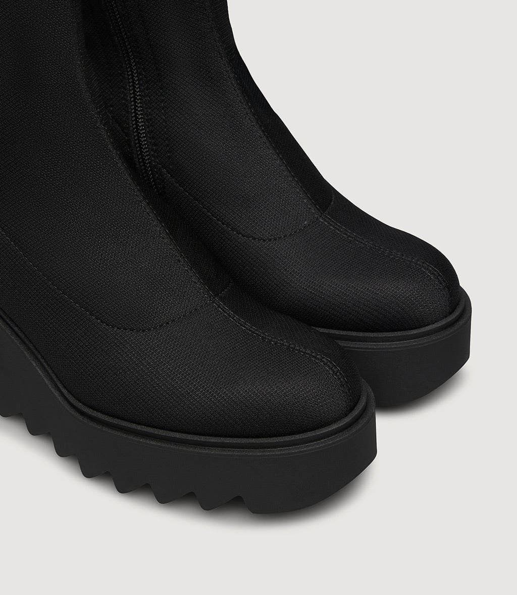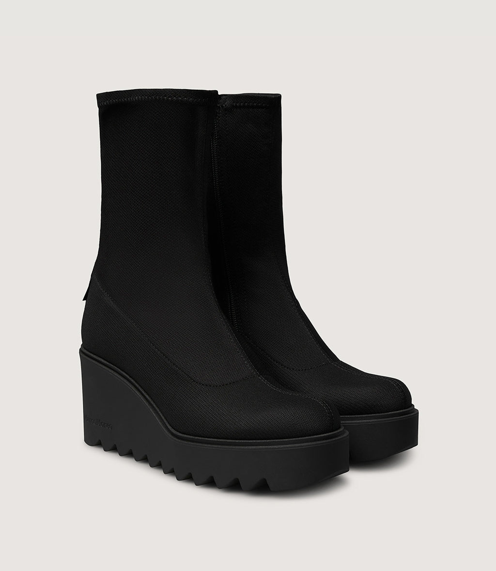 Effortlessly merging comfort, design, and sophistication, these  stretch ankle wedge boots embody the essence of modern Italian luxury. Crafted from premium stretch technical fabric, they offer a smooth, glove-like fit that elegantly shapes the ankle while ensuring flexibility and ease.