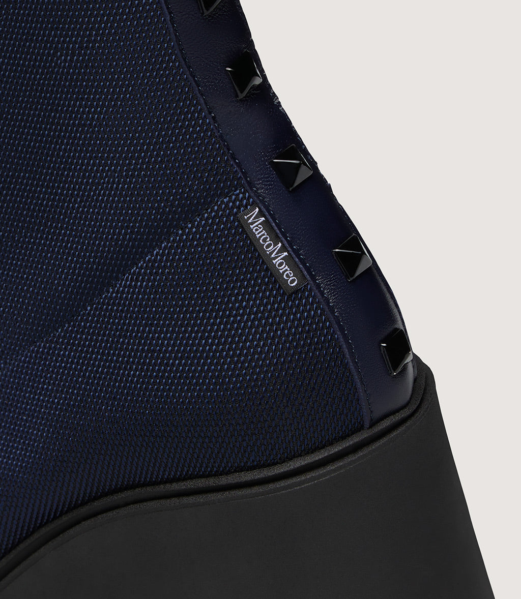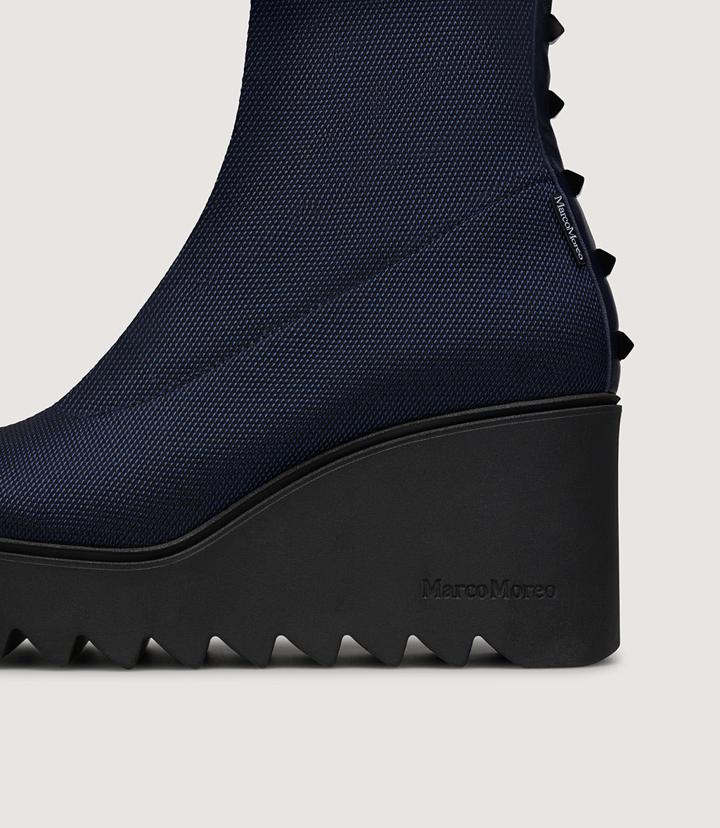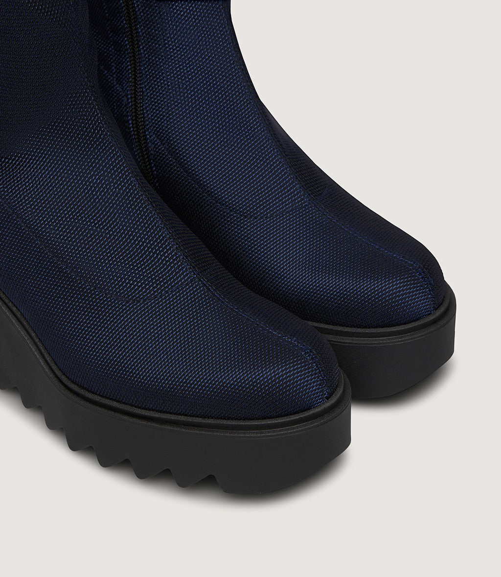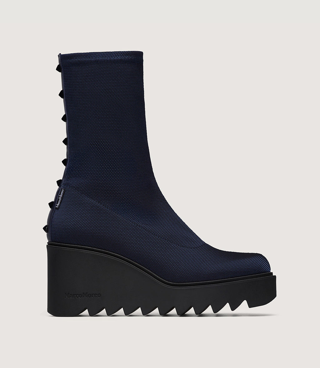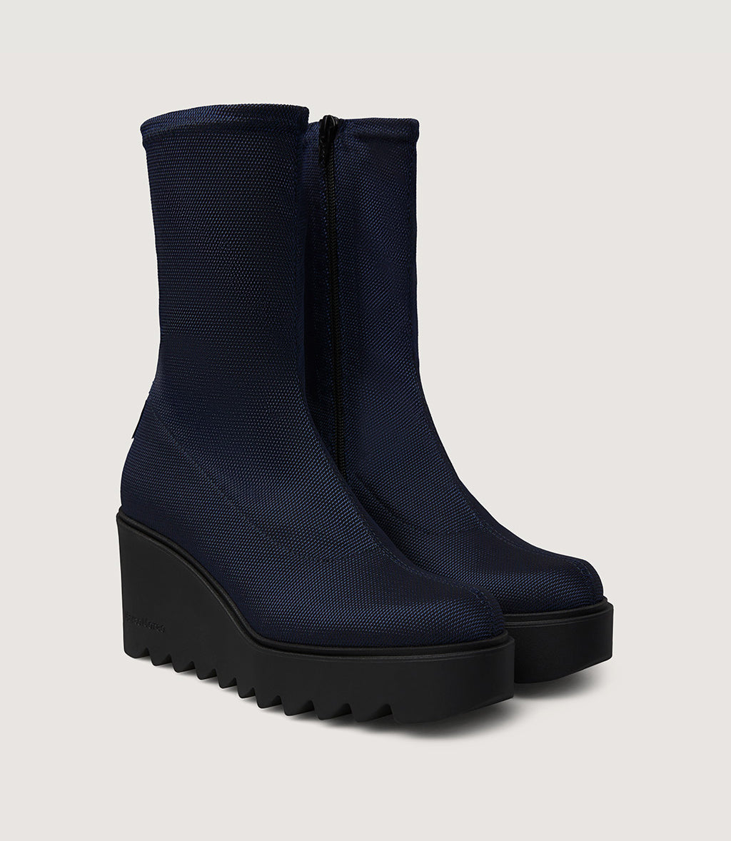 Effortlessly merging comfort, design, and sophistication, these  stretch ankle wedge boots embody the essence of modern Italian luxury. Crafted from premium stretch technical fabric, they offer a smooth, glove-like fit that elegantly shapes the ankle while ensuring flexibility and ease.