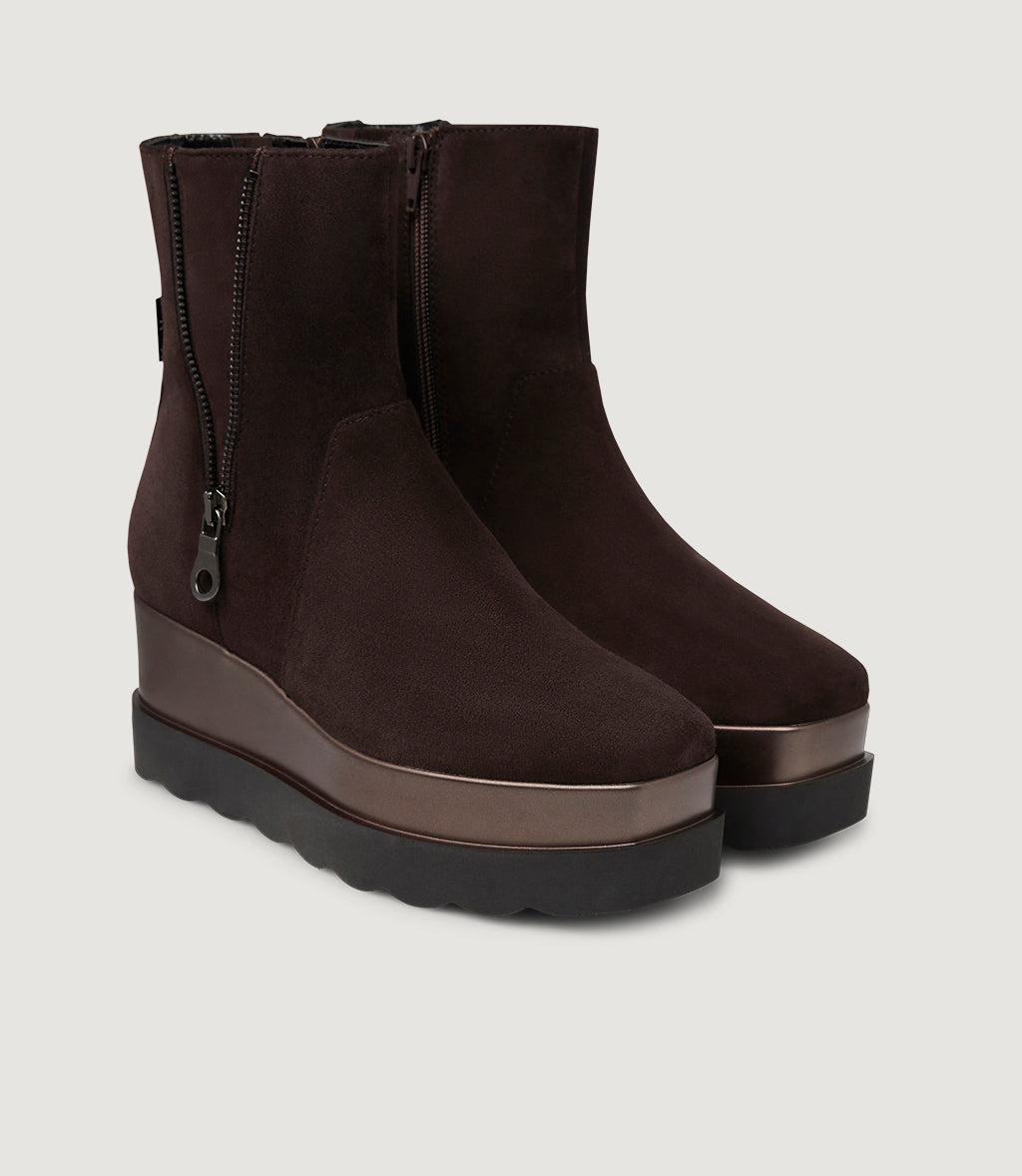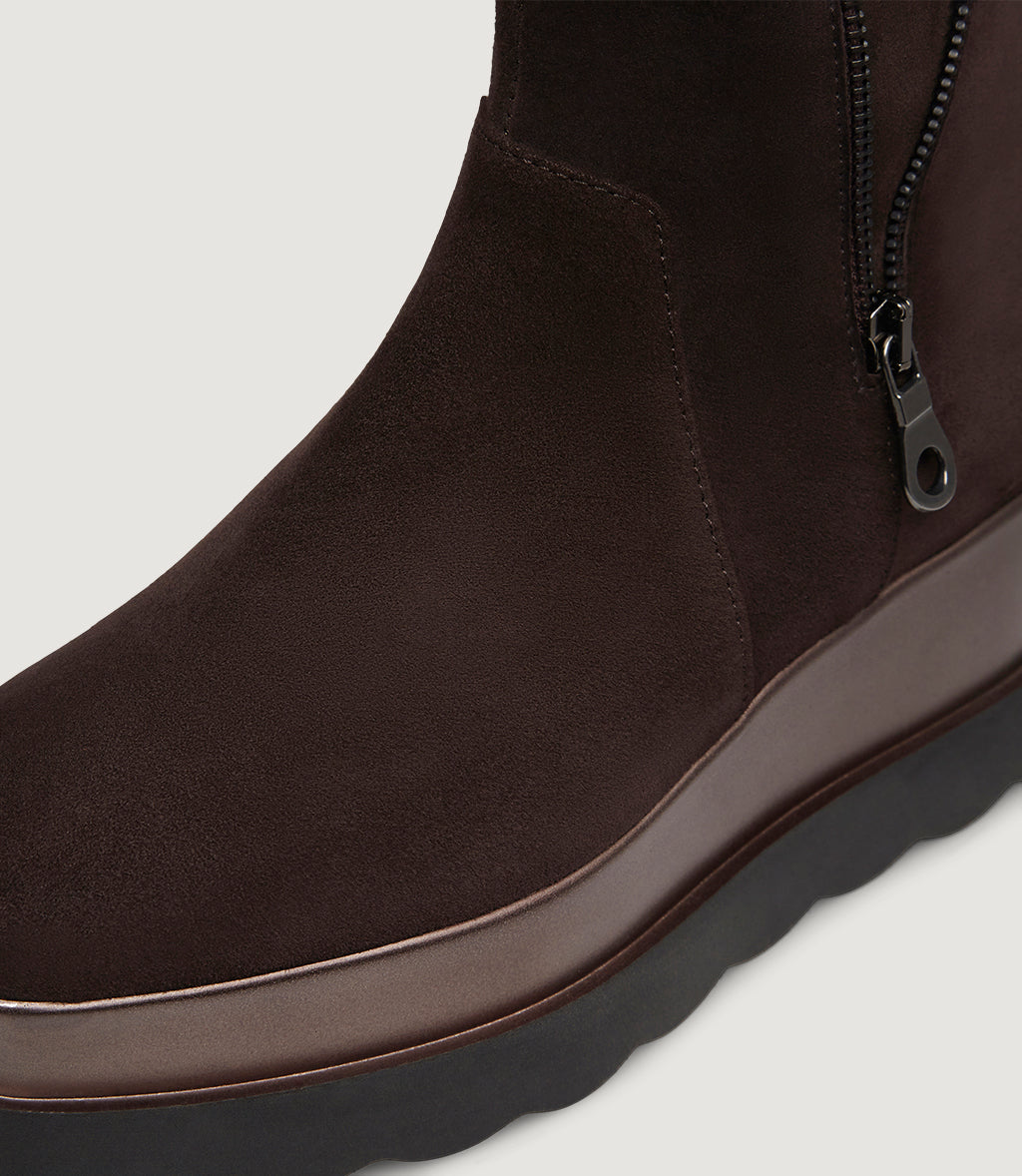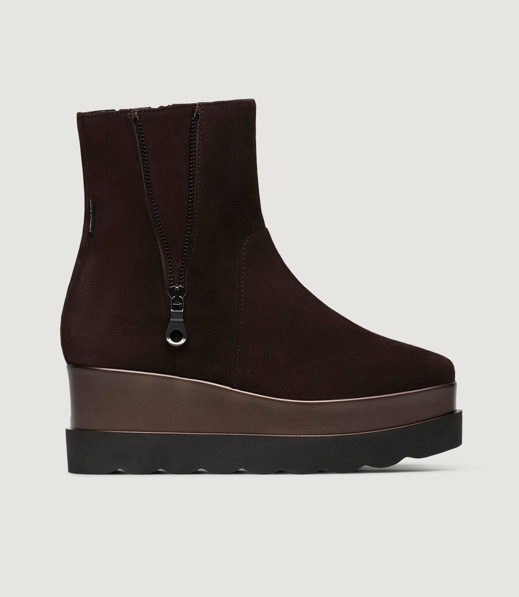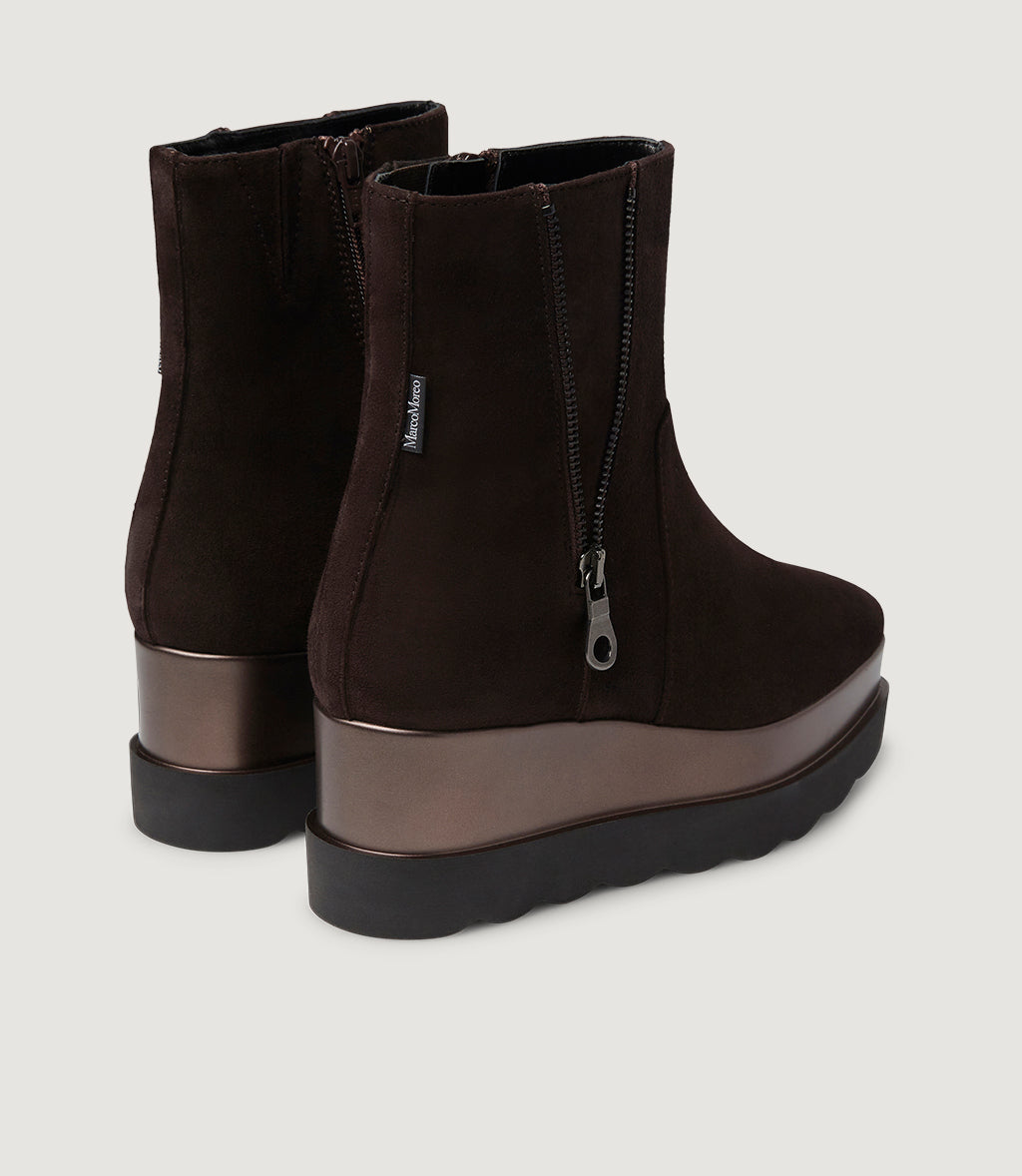 For years now, Scarlett has been Marco Moreo’s most iconic and popular ankle-boot. Following the black calfskin, red calfskin , this year we have in the main AW 25/26 collection also in camel suede and bordeaux calf and brown suede. Once again, all eyes are on the slightly open decorative zip (silver or gunmetal) and the squared design between the upper and the leg.