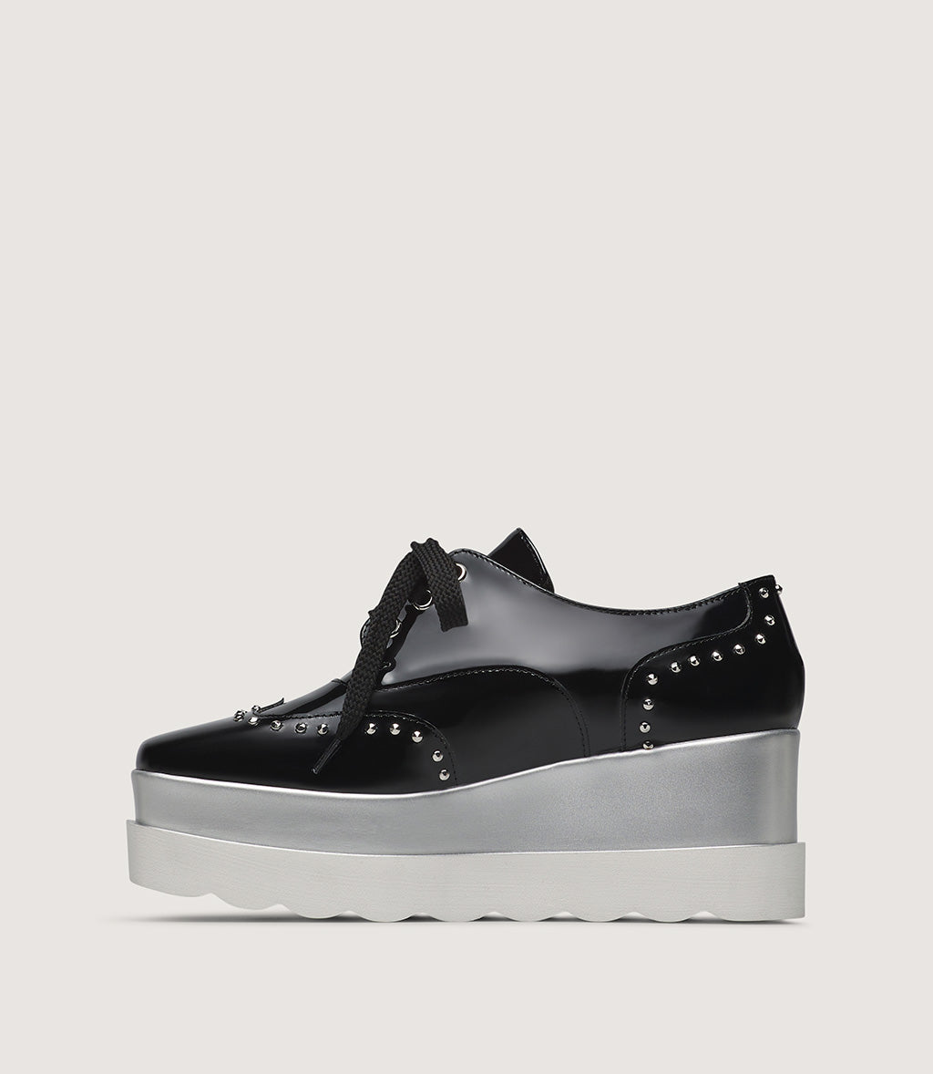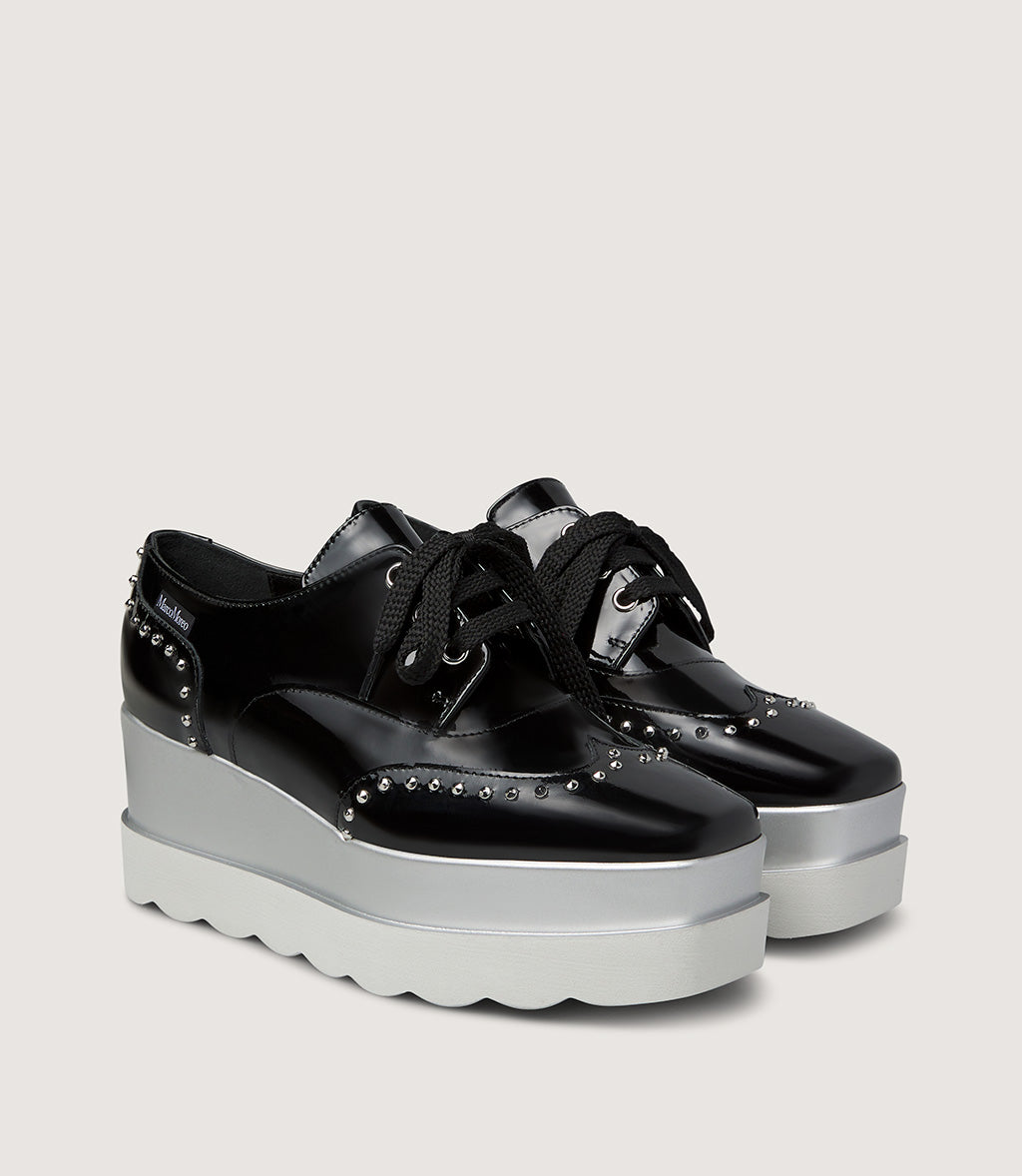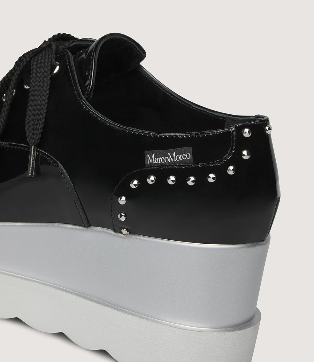 Patent Leather Platform Lace-Up Shoe with Stud Details