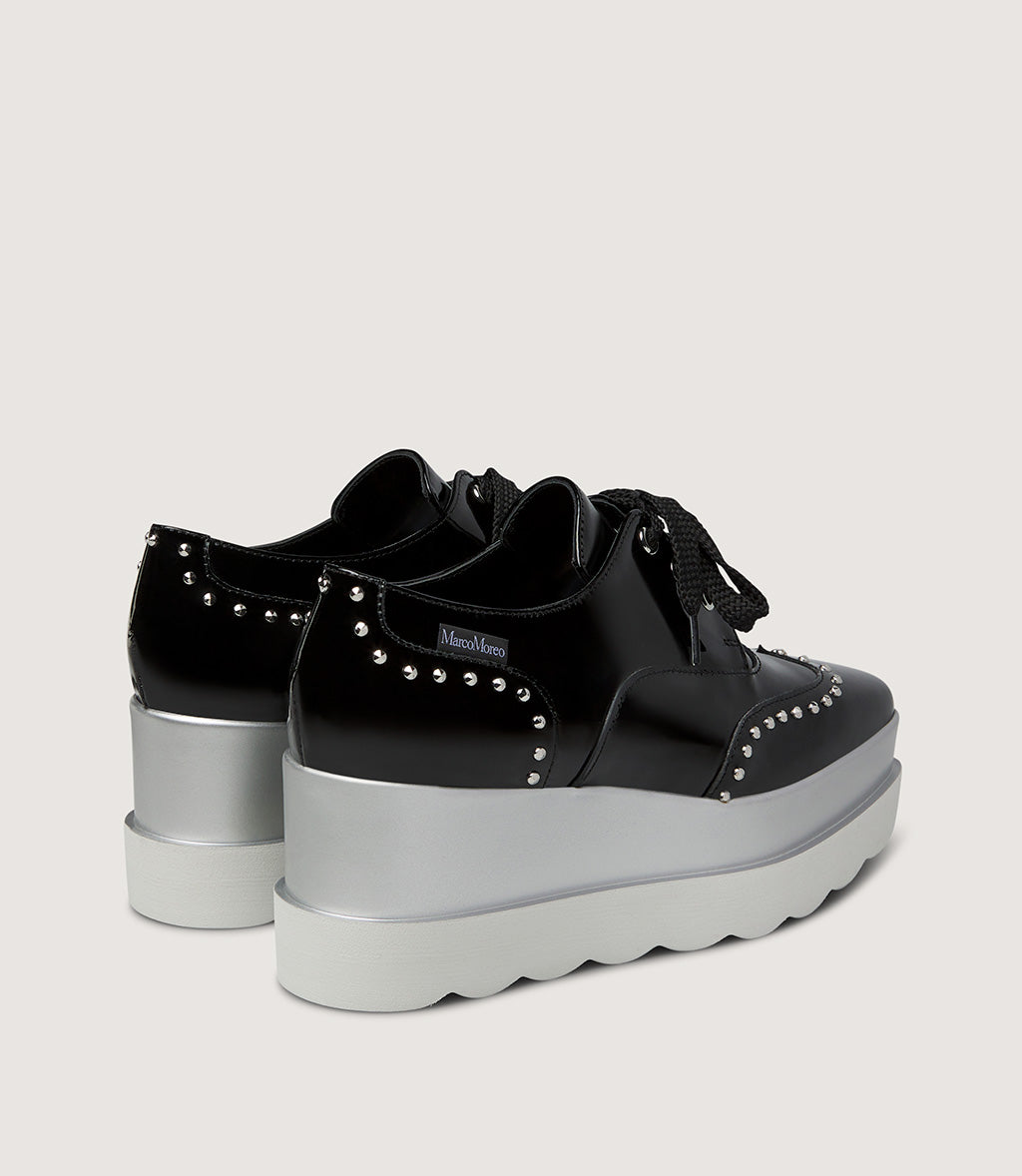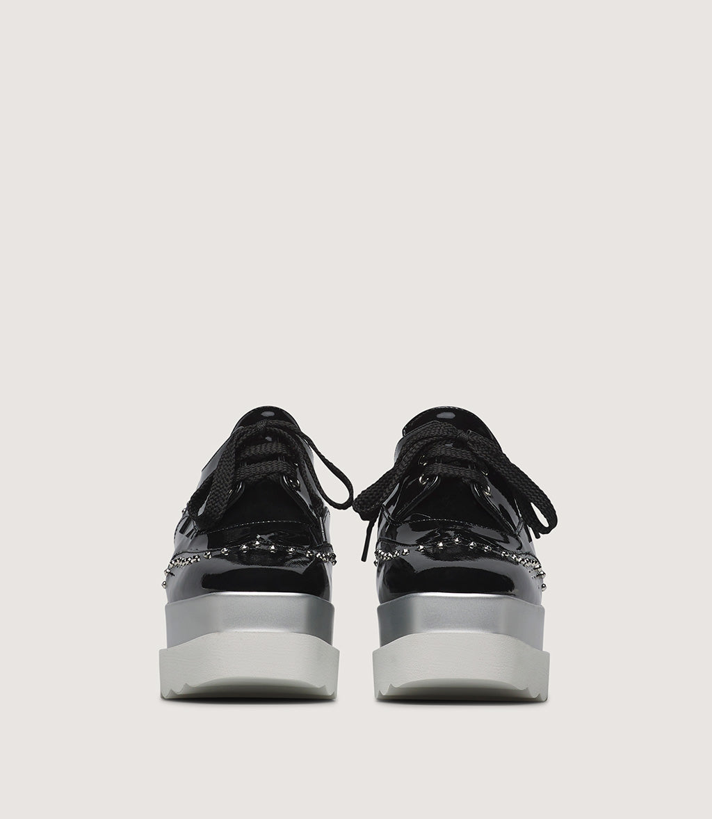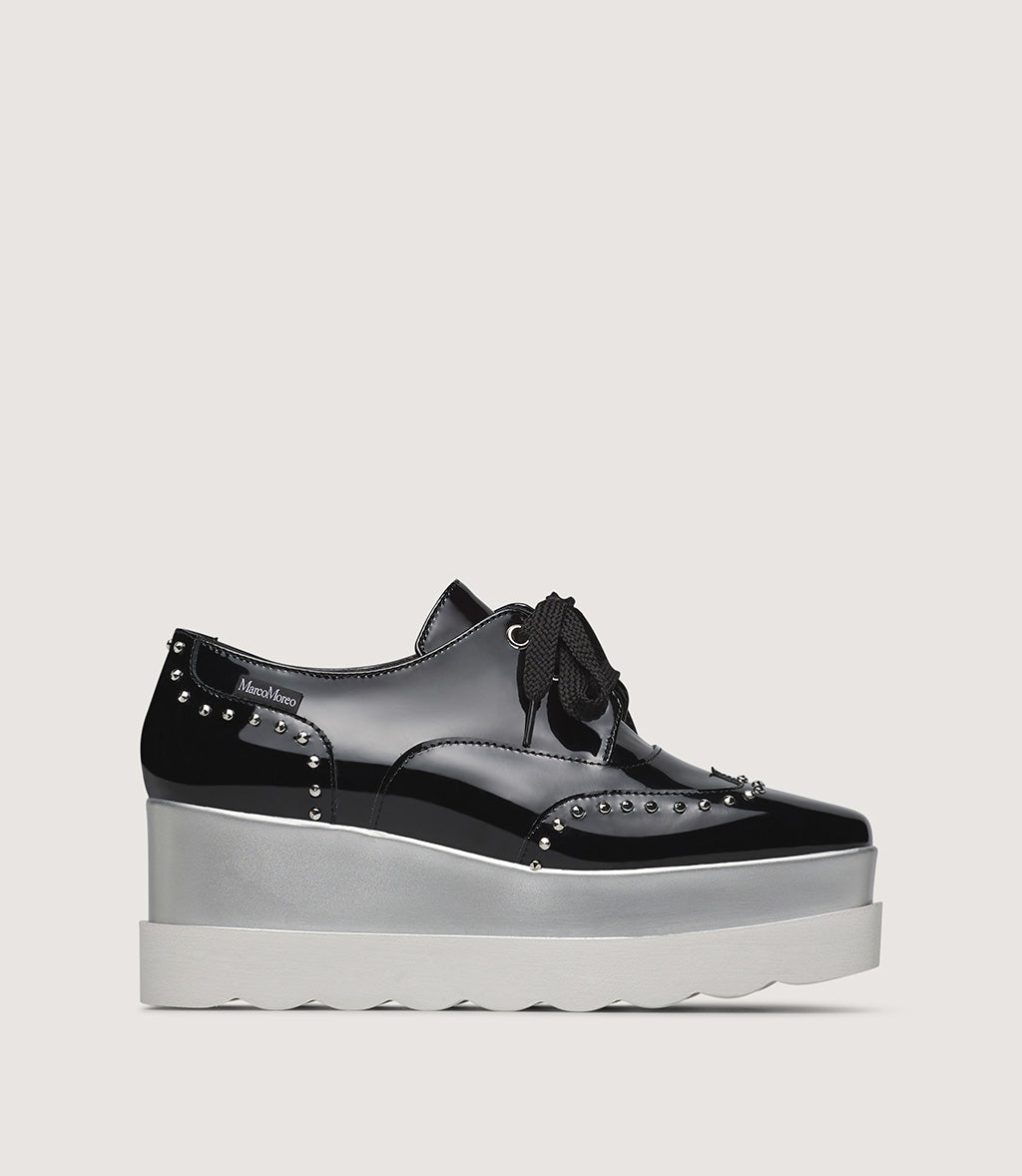 Patent Leather Platform Lace-Up Shoe with Stud Details