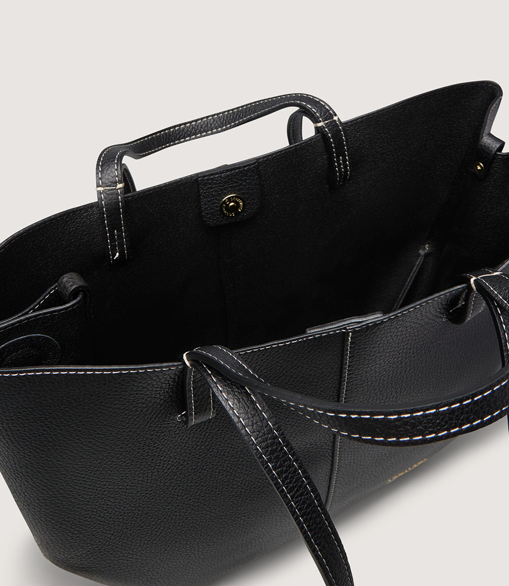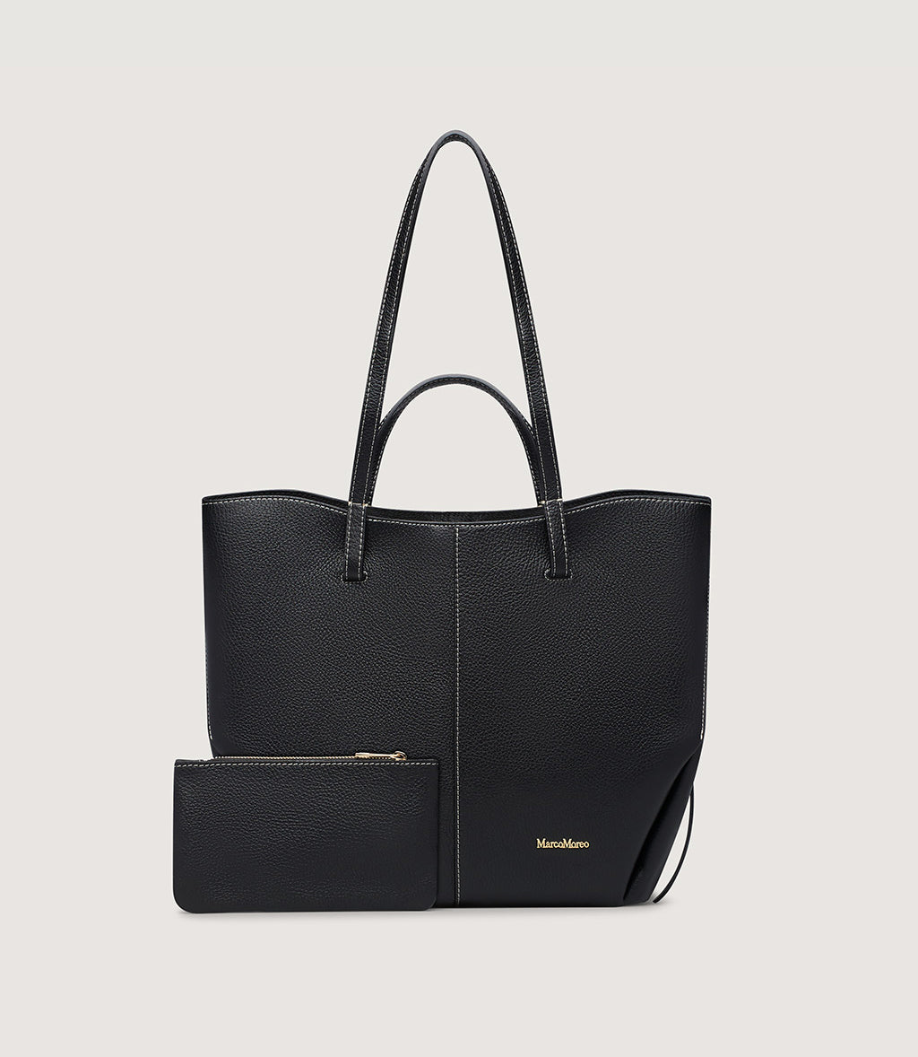 Crafted from premium grained leather, this spacious shopper is the perfect blend of elegance and practicality. Its clean, structured design is complemented by subtle stitching details, creating a versatile accessory that transitions seamlessly from work to weekend.