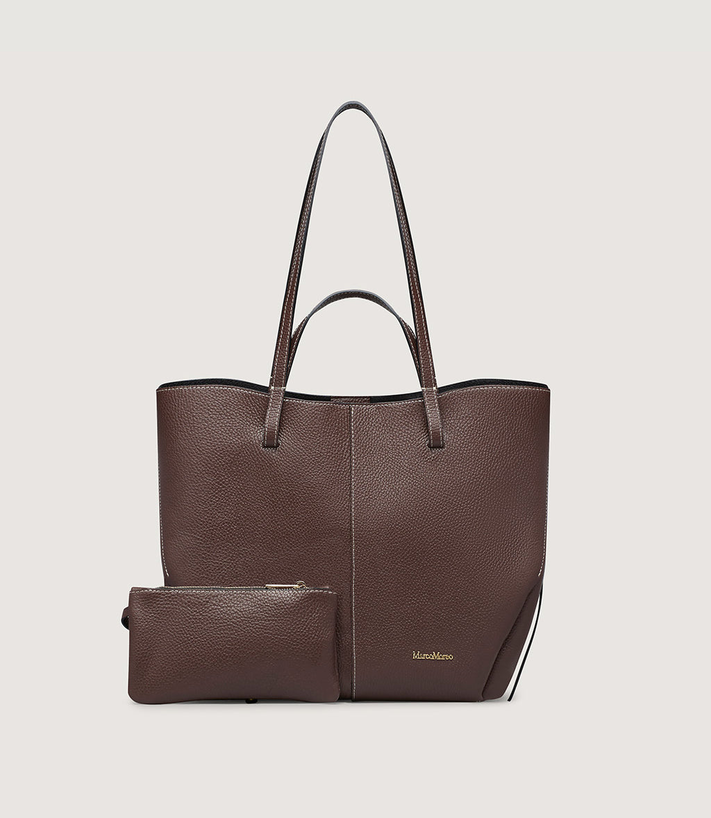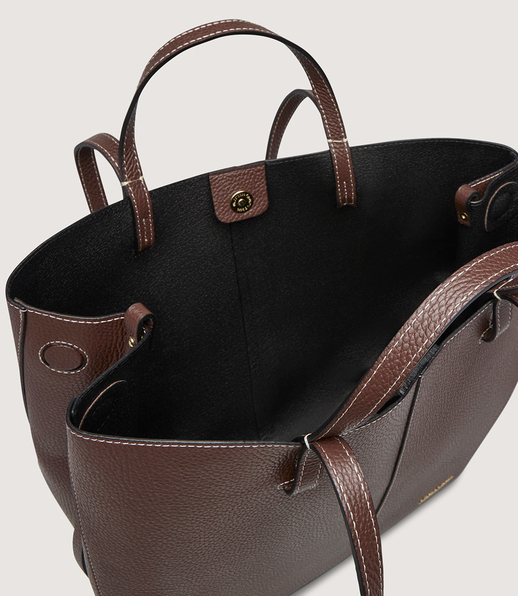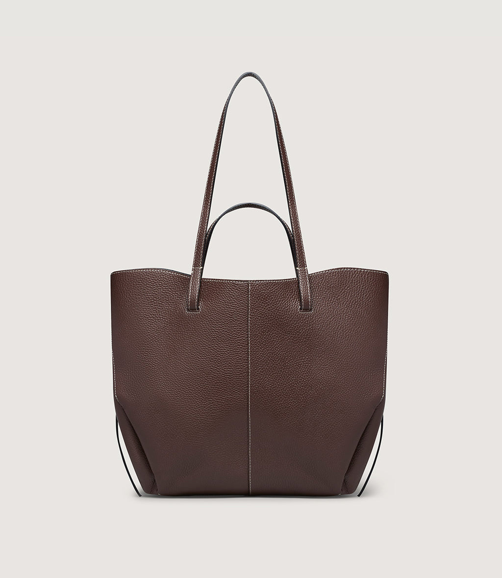 Crafted from premium grained leather, this spacious shopper is the perfect blend of elegance and practicality. Its clean, structured design is complemented by subtle stitching details, creating a versatile accessory that transitions seamlessly from work to weekend.