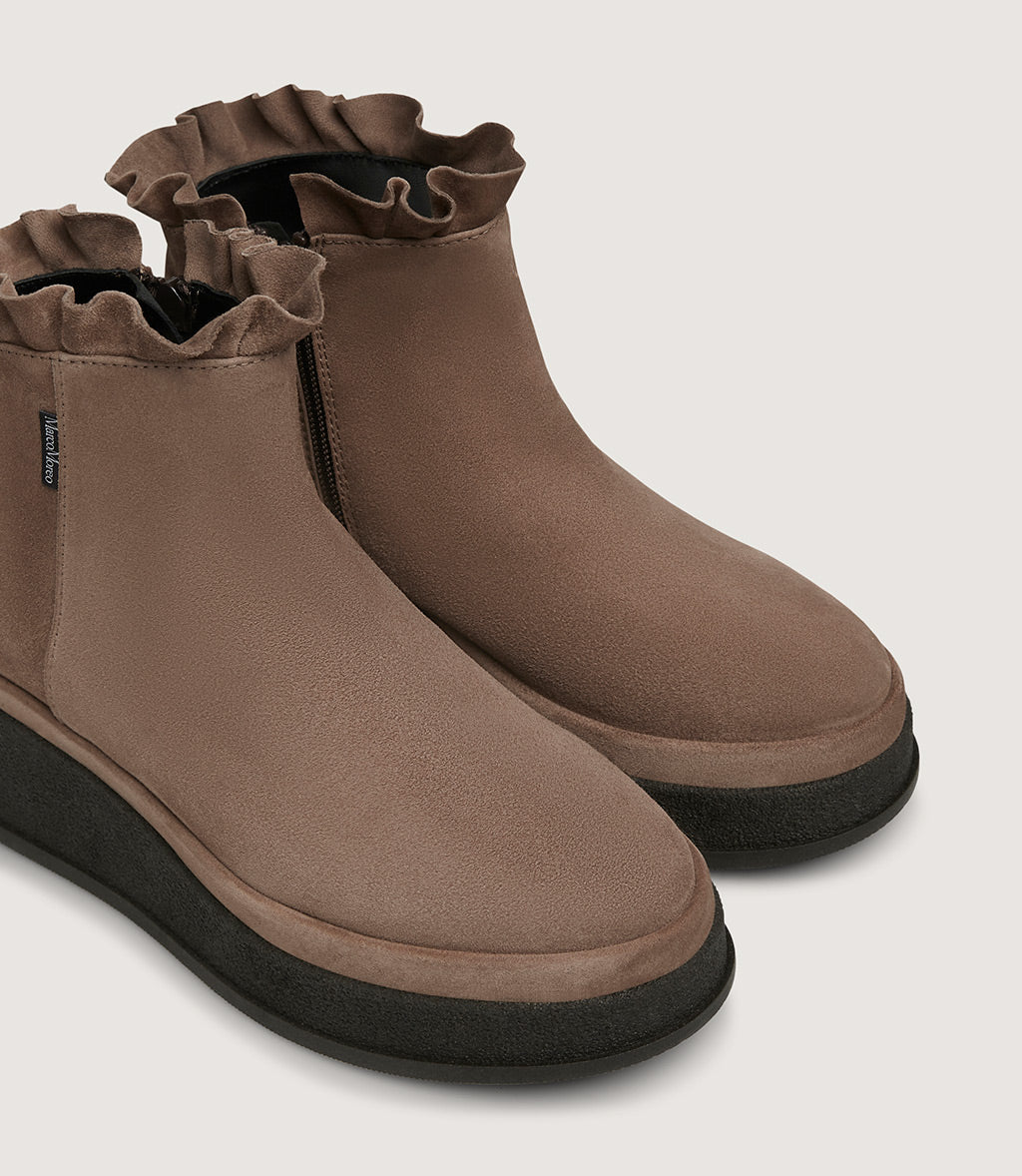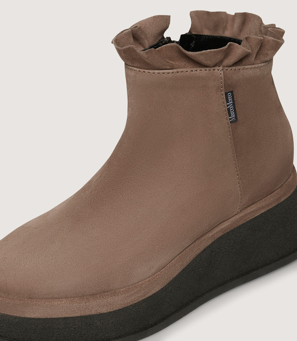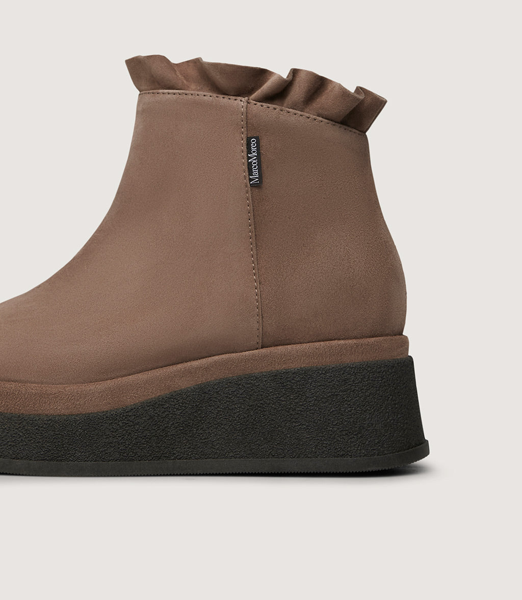 • Ankle-height shaft with soft ruffle detail