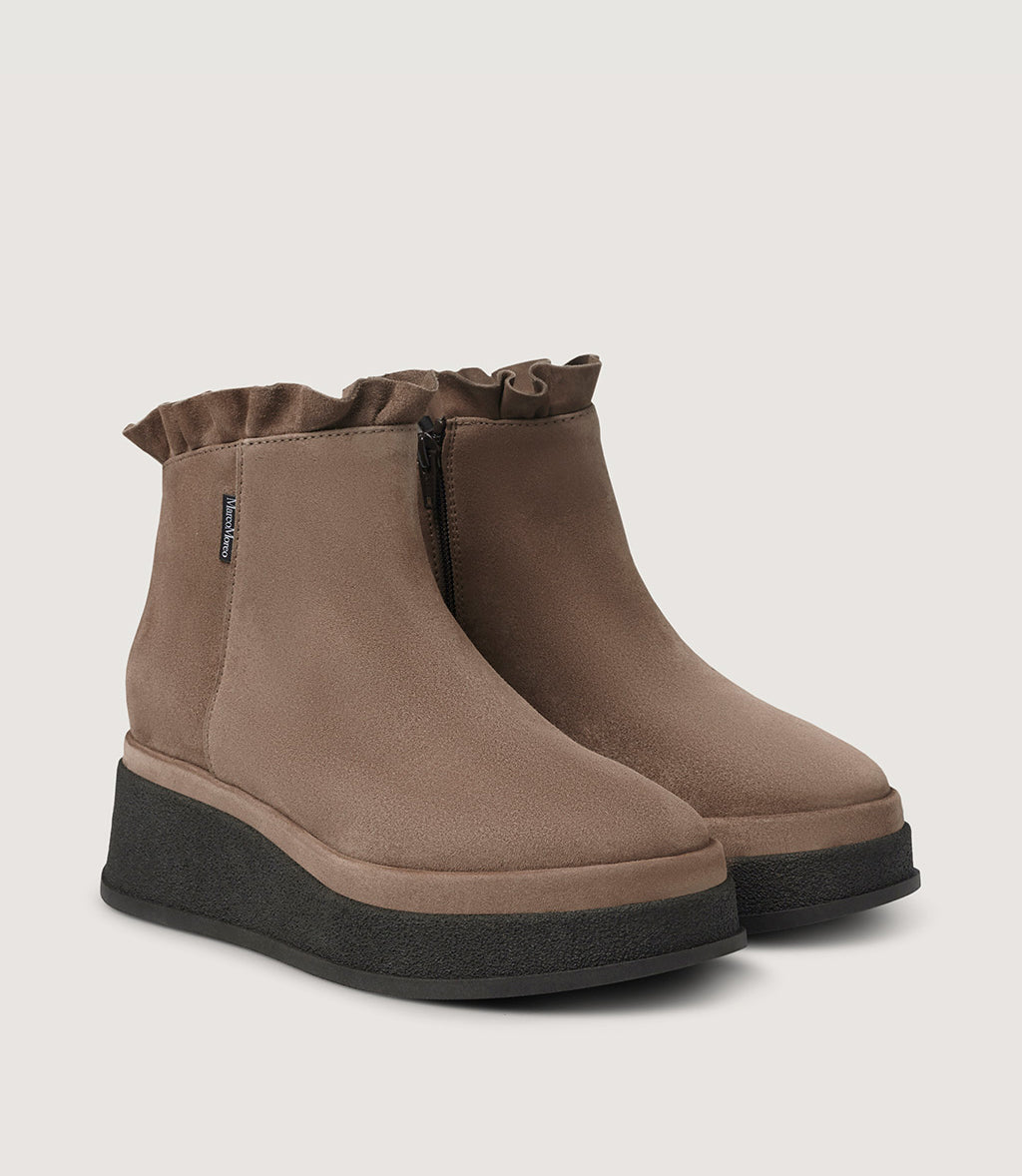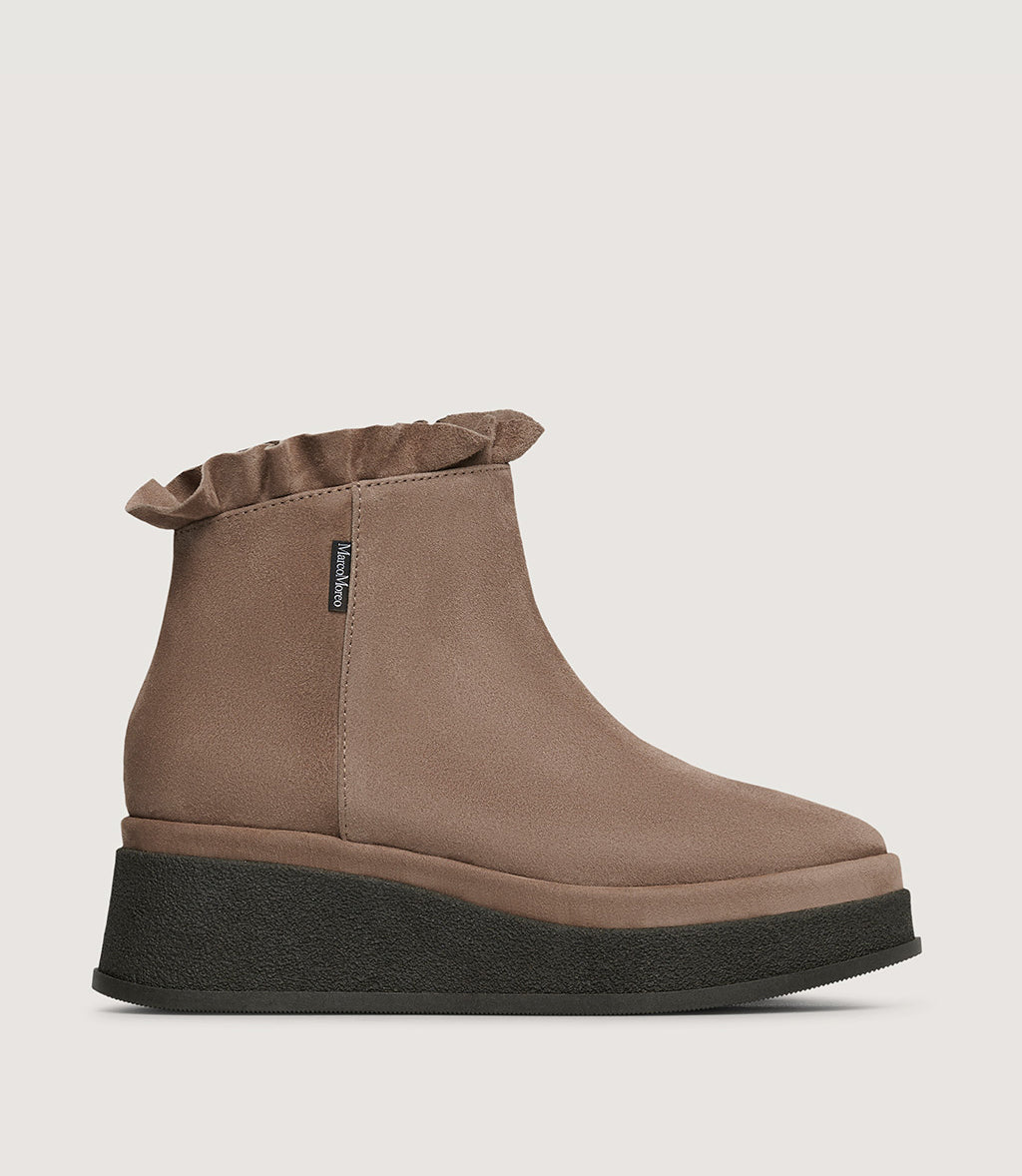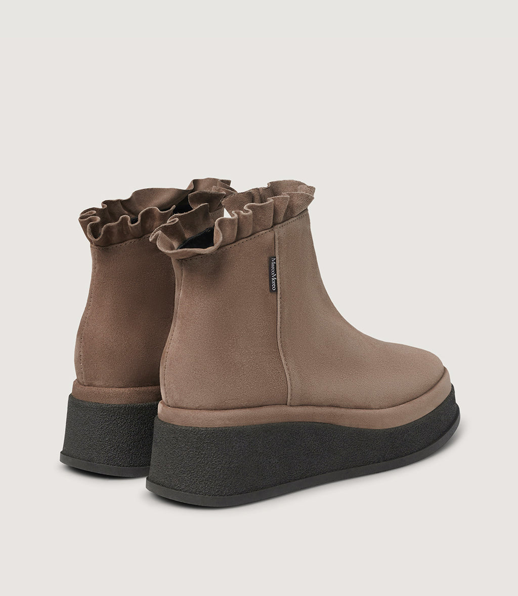 • Ankle-height shaft with soft ruffle detail
