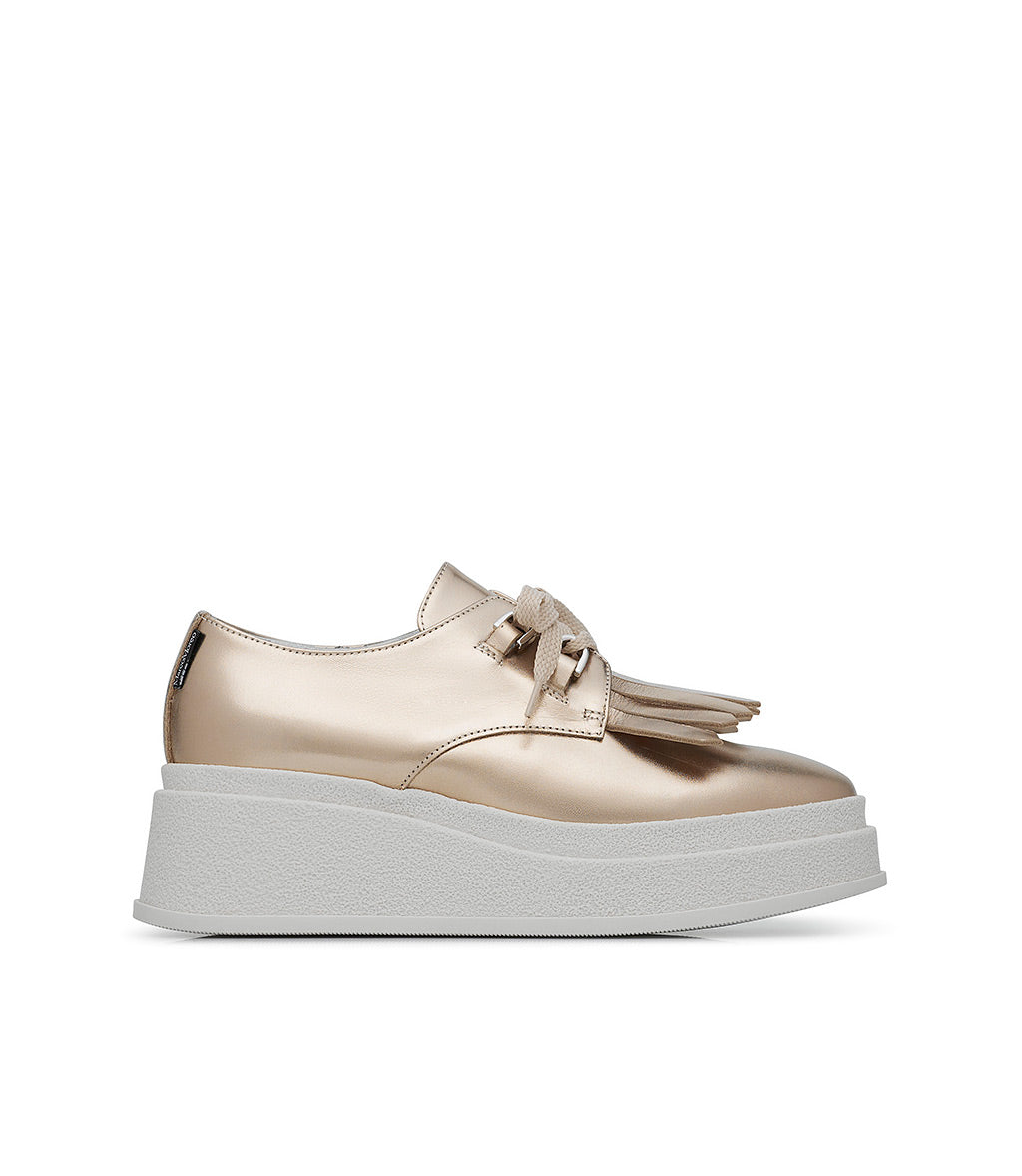 Zahra is a new entry in the spring-summer 2025 Collection designed by Marco Moreo. She’s a classic lace-up with a playful side thanks to the added fringe. She’s available in two versions, both stood on a lightweight, monoblock rubber sole.